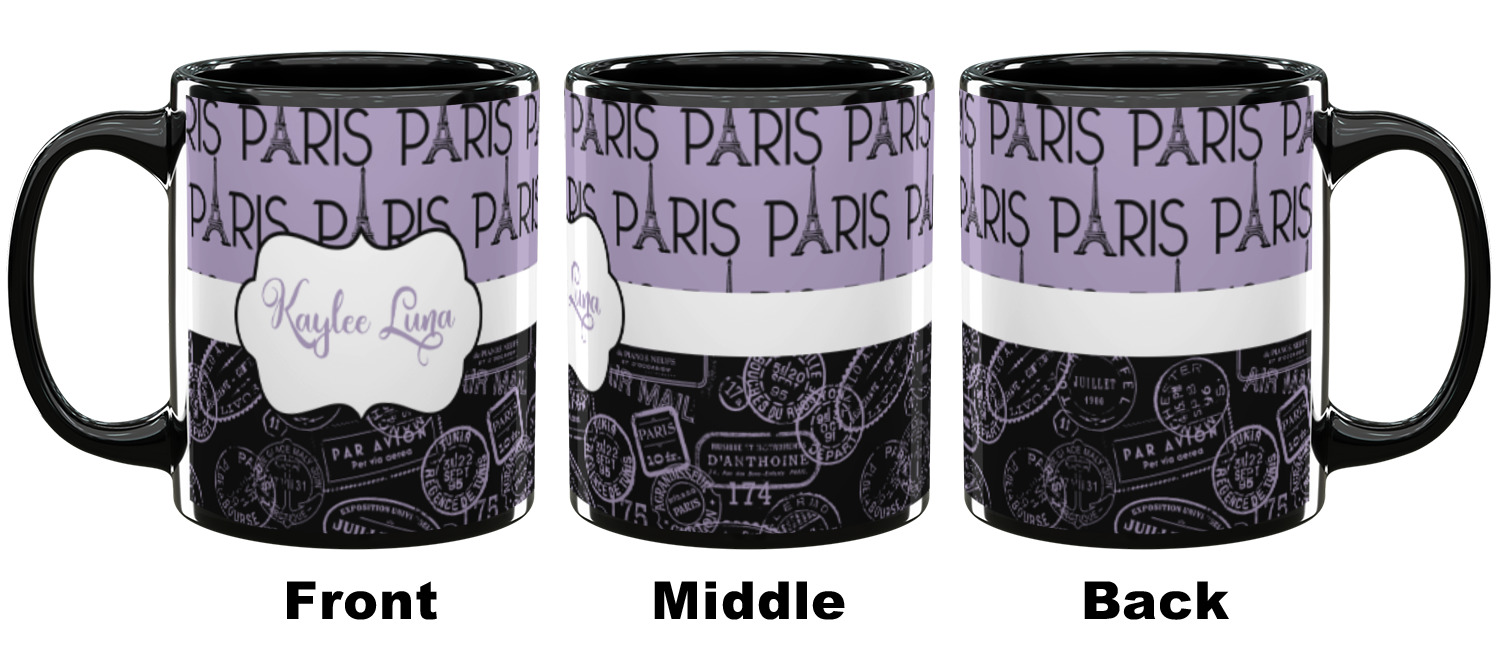 Our ceramic mugs have your design or photo printed along the surface with a gloss finish. The ceramic material of our mugs is dishwasher and microwave safe so you can reheat your tea or coffee if needed! We offer two different base colors with multiple mug sizes. The white ceramic mugs come in three size options - 11 oz., 15 oz., and 20 oz. Our black ceramic mugs are sold in either 11 oz. or 15 oz. sizes.