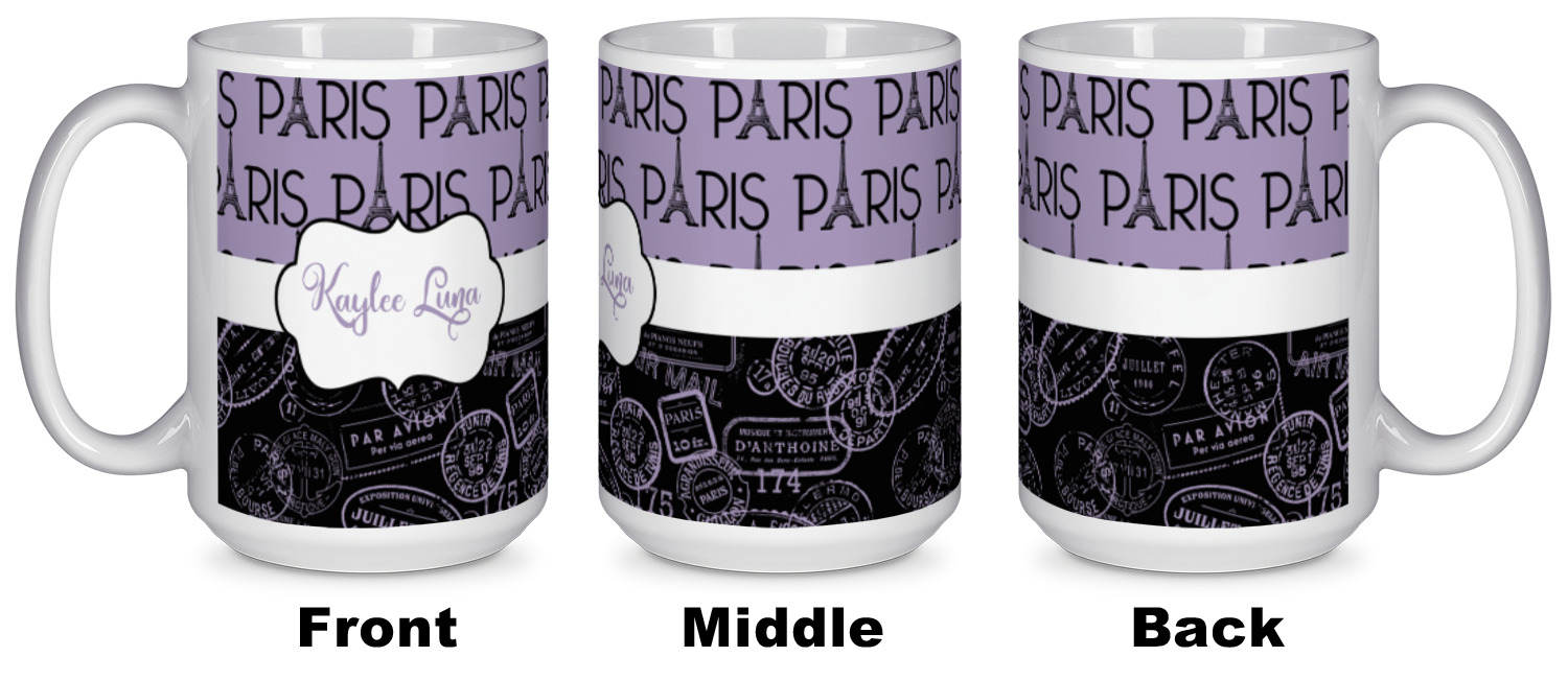 Our ceramic mugs have your design or photo printed along the surface with a gloss finish. The ceramic material of our mugs is dishwasher and microwave safe so you can reheat your tea or coffee if needed! We offer two different base colors with multiple mug sizes. The white ceramic mugs come in three size options - 11 oz., 15 oz., and 20 oz. Our black ceramic mugs are sold in either 11 oz. or 15 oz. sizes.