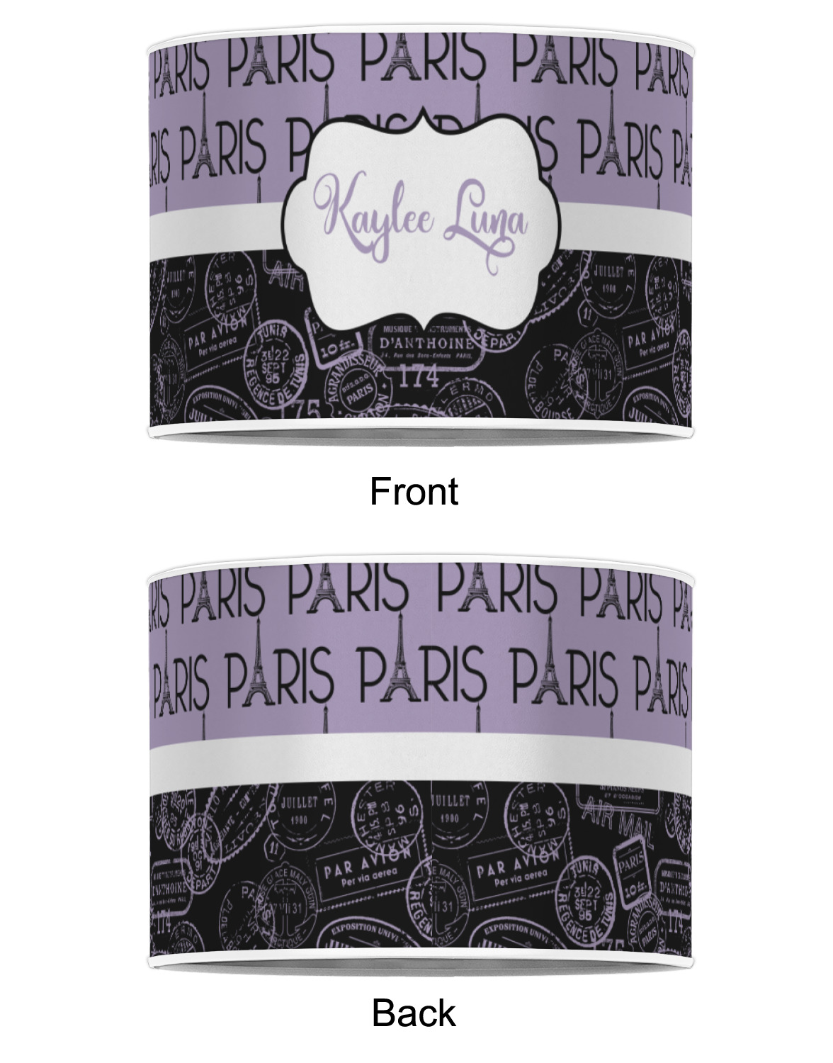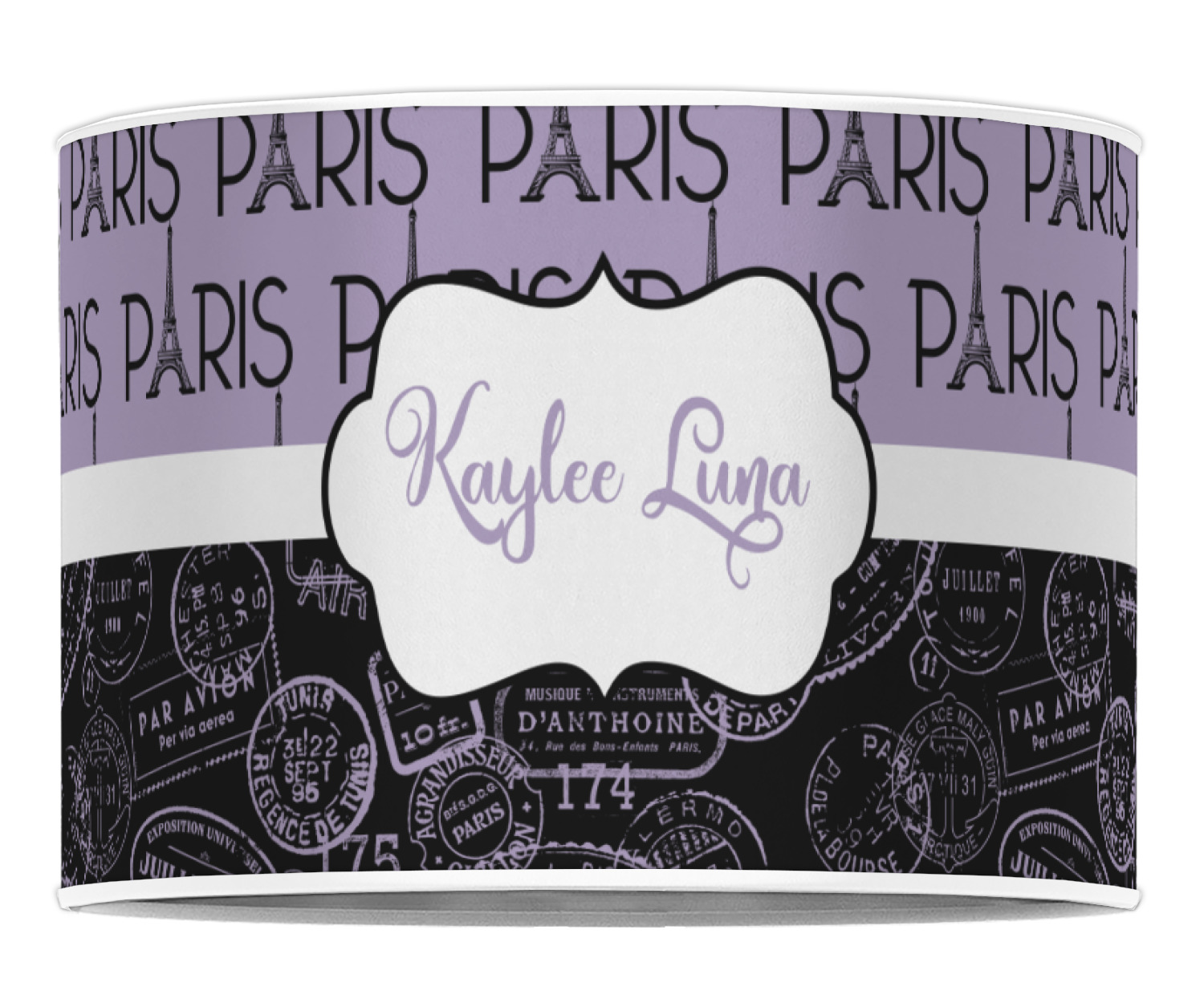 Our personalized drum lamp shades are available in 2 different materials: Poly-film or fabric. Poly-film lamp shades come with the option of white or black border trims to best match your customized design. Fabric lamp shades are finished with a rolled edge for a clean modern look.