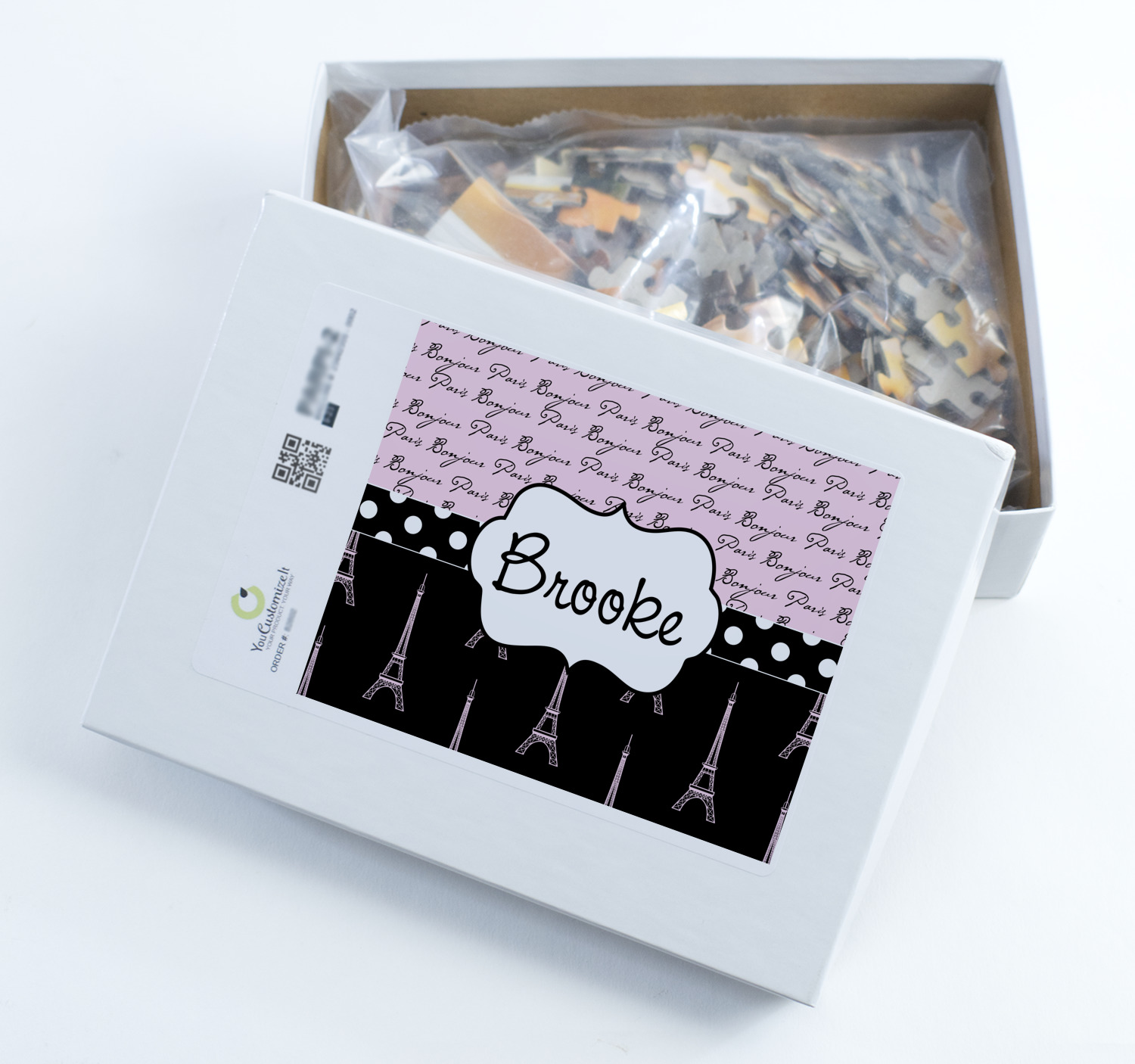 We print our puzzles on thick white chipboard in vibrant colors, then laminate the chipboard and die cut your puzzle. Your jigsaw puzzle is shipped to you in a box with the image of the puzzle on the box.