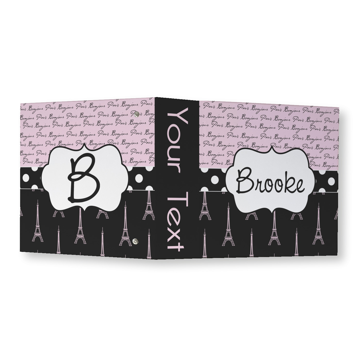 Made from a sturdy cardboard base with a full high quality canvas textured vinyl wrap with the design of your choice. Unlike our standard 3-ring binder with the full wrap design your artwork wraps from the front and back and into the inside of the binder.