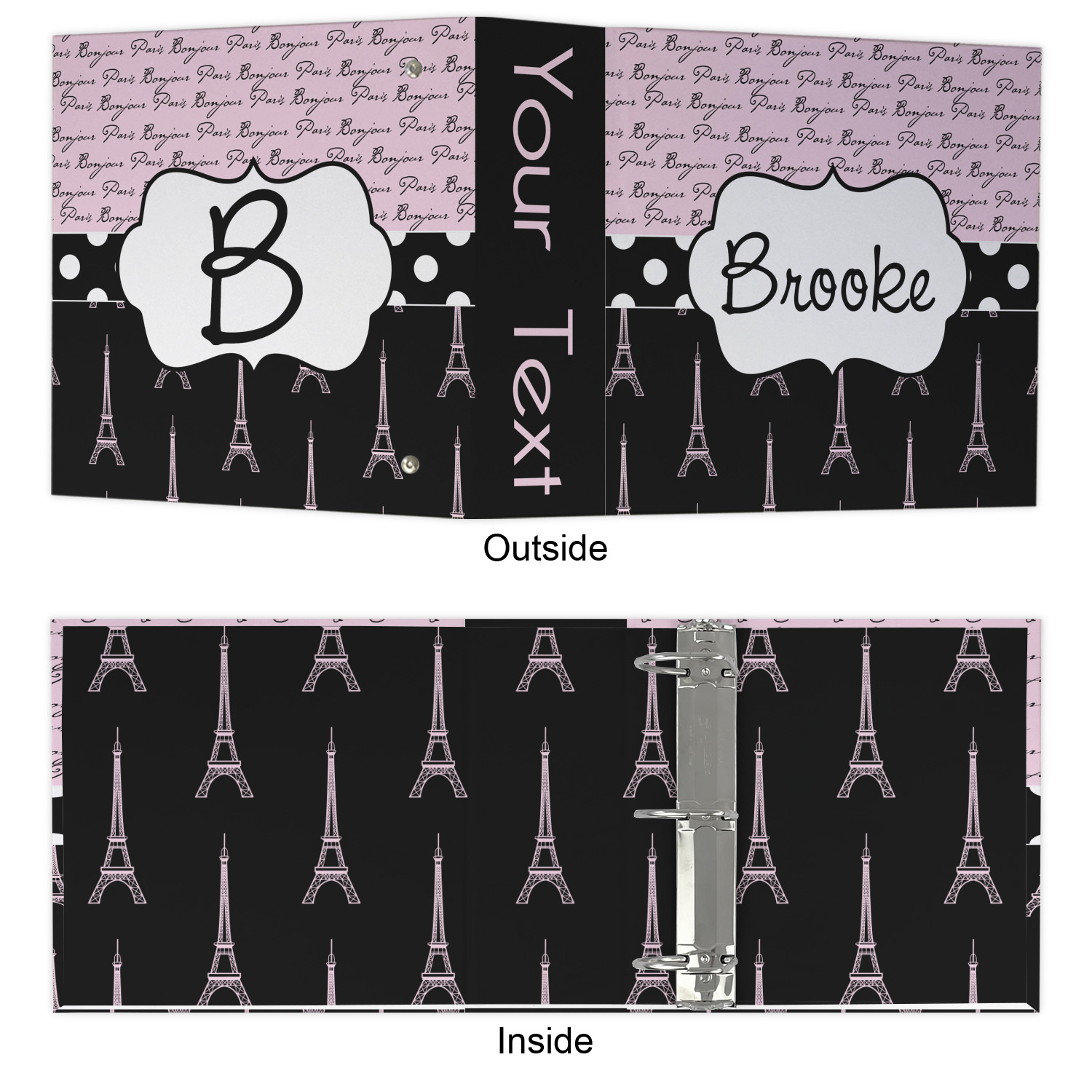 The outside is printed in 3 sections - front cover, spine and back cover - while the inside is printed in a full single print of your choice. The inside boasts a high quality nickel plated binder mechanism with a trigger opening function and is secured to the cardboard binder with posts and screws.