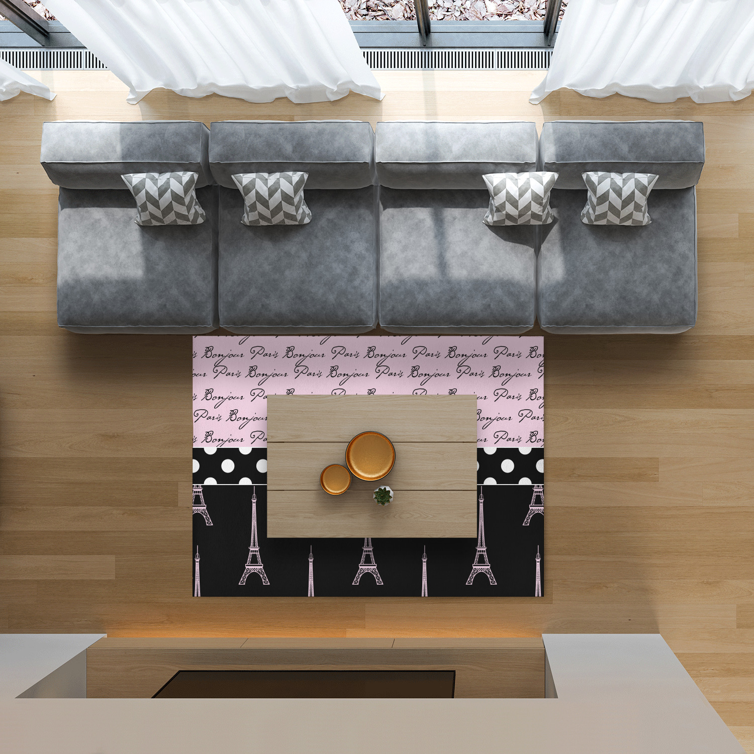 Ooh La La! Add a bit of Parisian elegance to your decor with this gorgeous French Eiffel Tower design. The top of the design features a delicate, soft pink background to feature the words "Bonjour" & "Paris" written in black graphic text. The bottom half of the design a black backdrop is use so that the iconic Eiffel Tower in pink come to life.