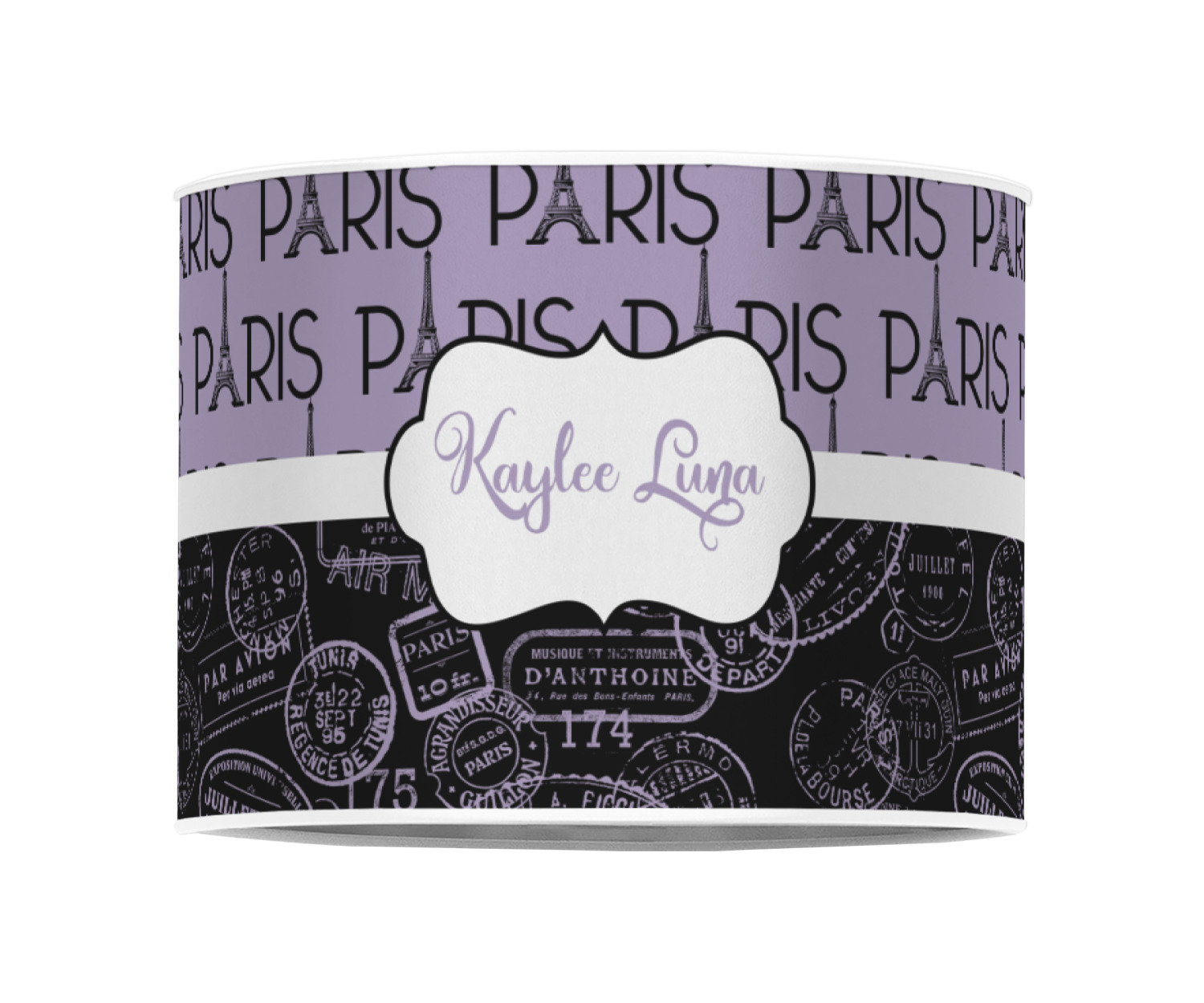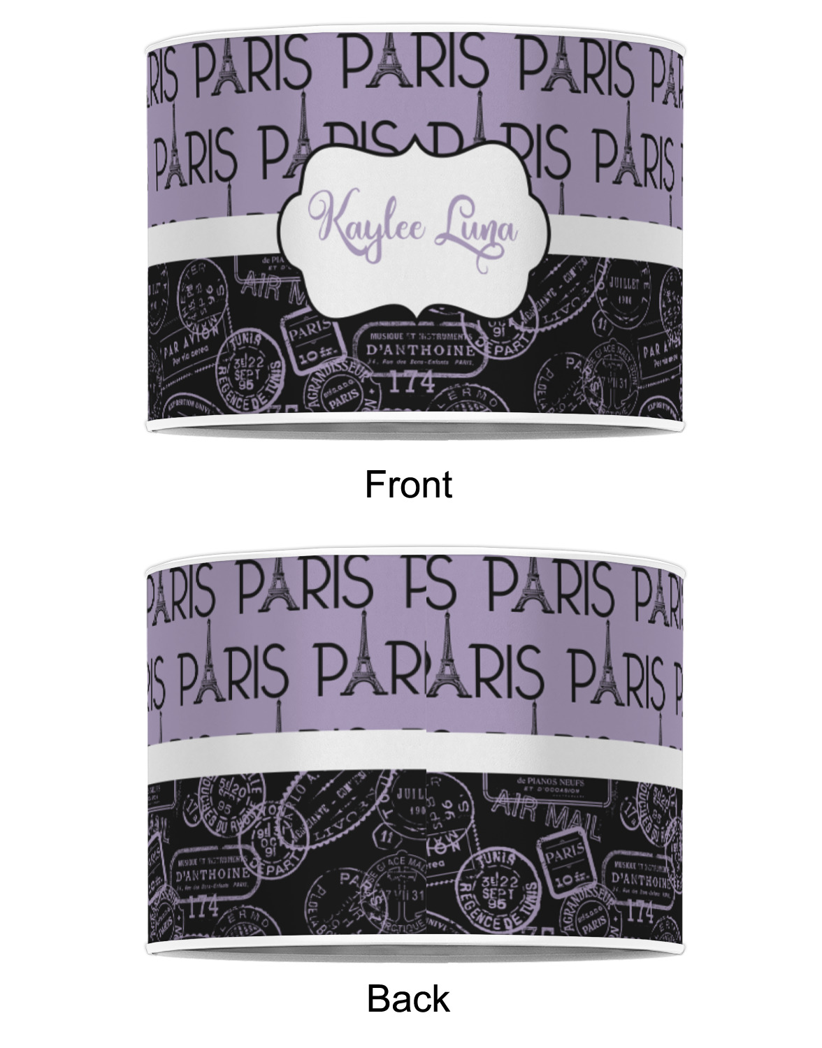 Our personalized drum lamp shades are available in 2 different materials: Poly-film or fabric. Poly-film lamp shades come with the option of white or black border trims to best match your customized design. Fabric lamp shades are finished with a rolled edge for a clean modern look.