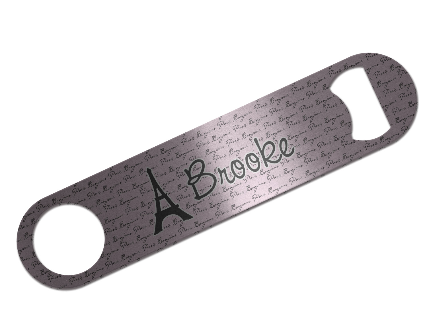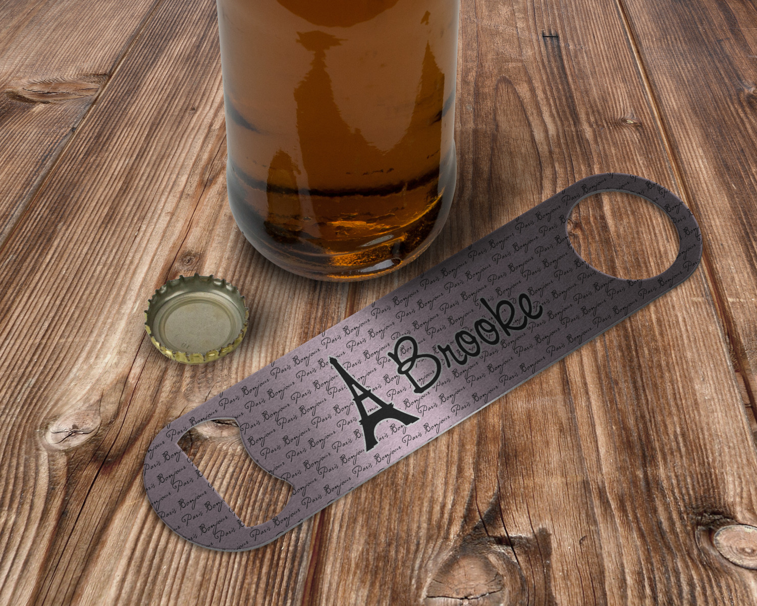 Stop struggling with the caps or your bottled beverages by purchasing one of our personalized bottle openers! These wrench-like custom bar blades are built to last. Customize one for your home's bar, or as a practical gift for a loved one!