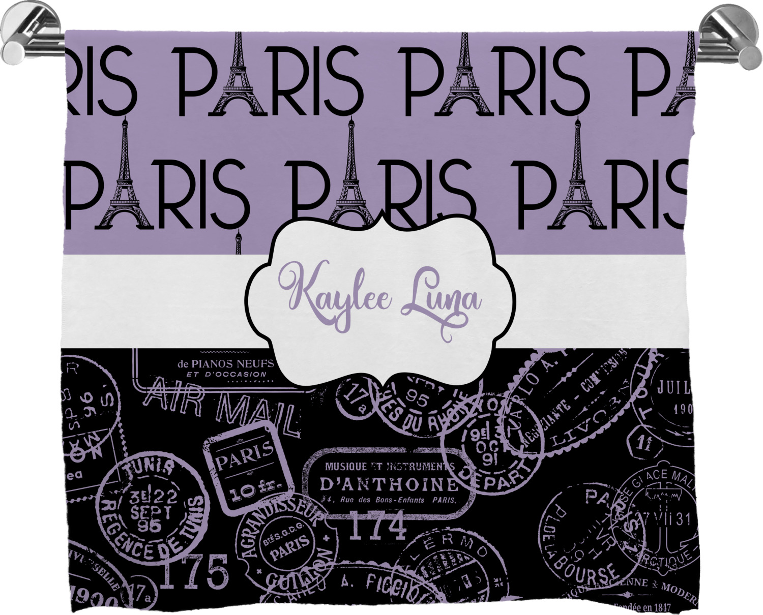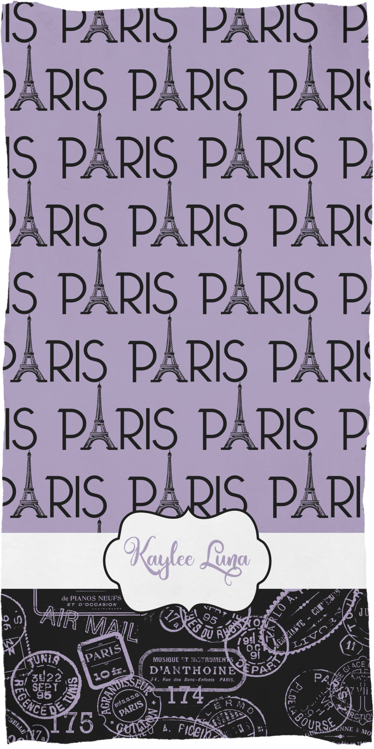 These customized bath towels are slightly larger than your standard towel and are the ideal size for wrapping around your body. They measure approximately 60" x 30". Your customization is displayed across the entire front face of the towel, while the back is white.