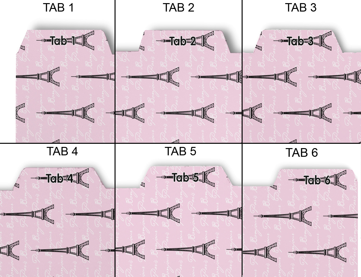 Made from a durable heavy weight card stock, these page dividers are printed on one side with your custom design. Customize the title on each tab as well as the background on each divider to make them unique to you. The possibilities are endless!