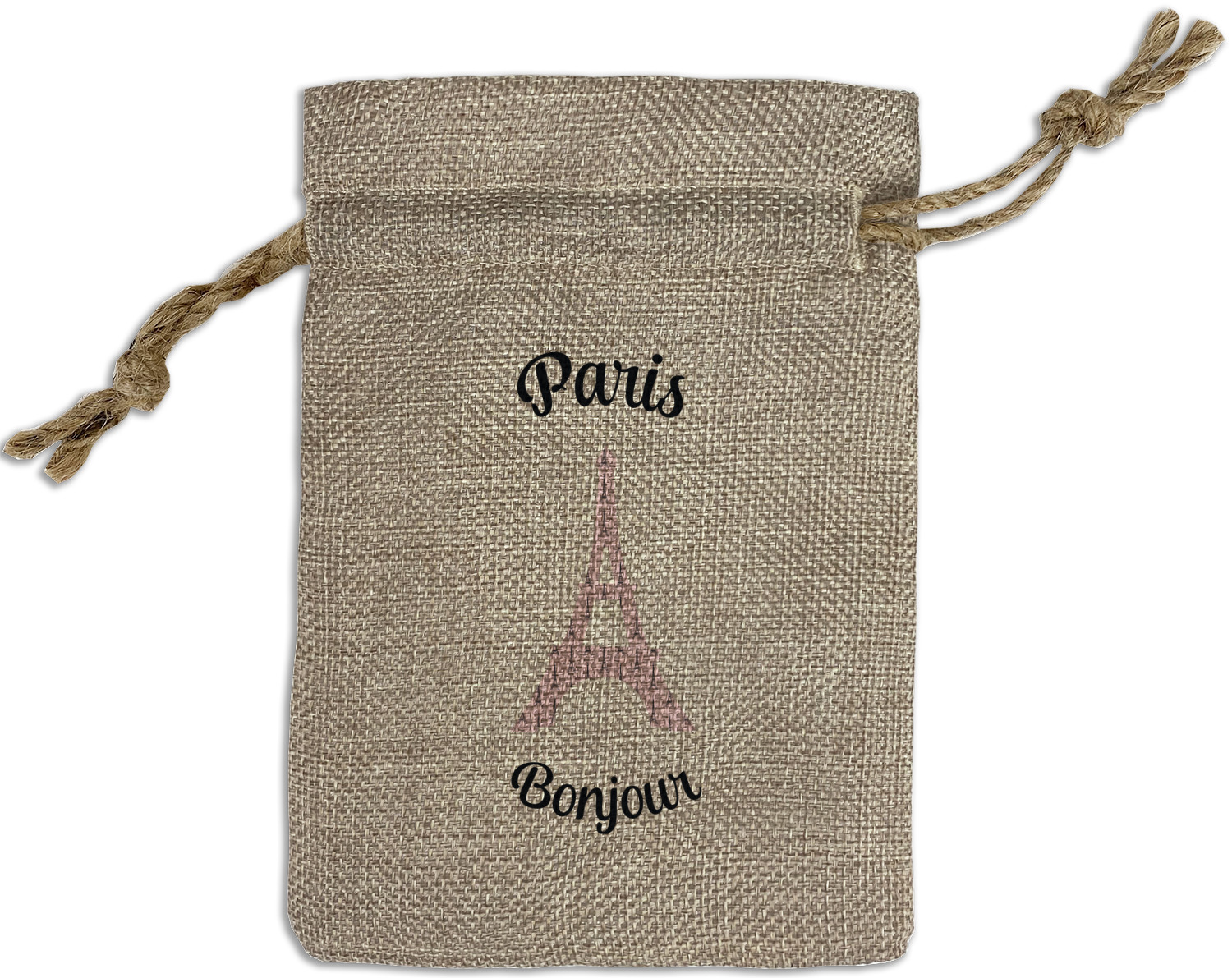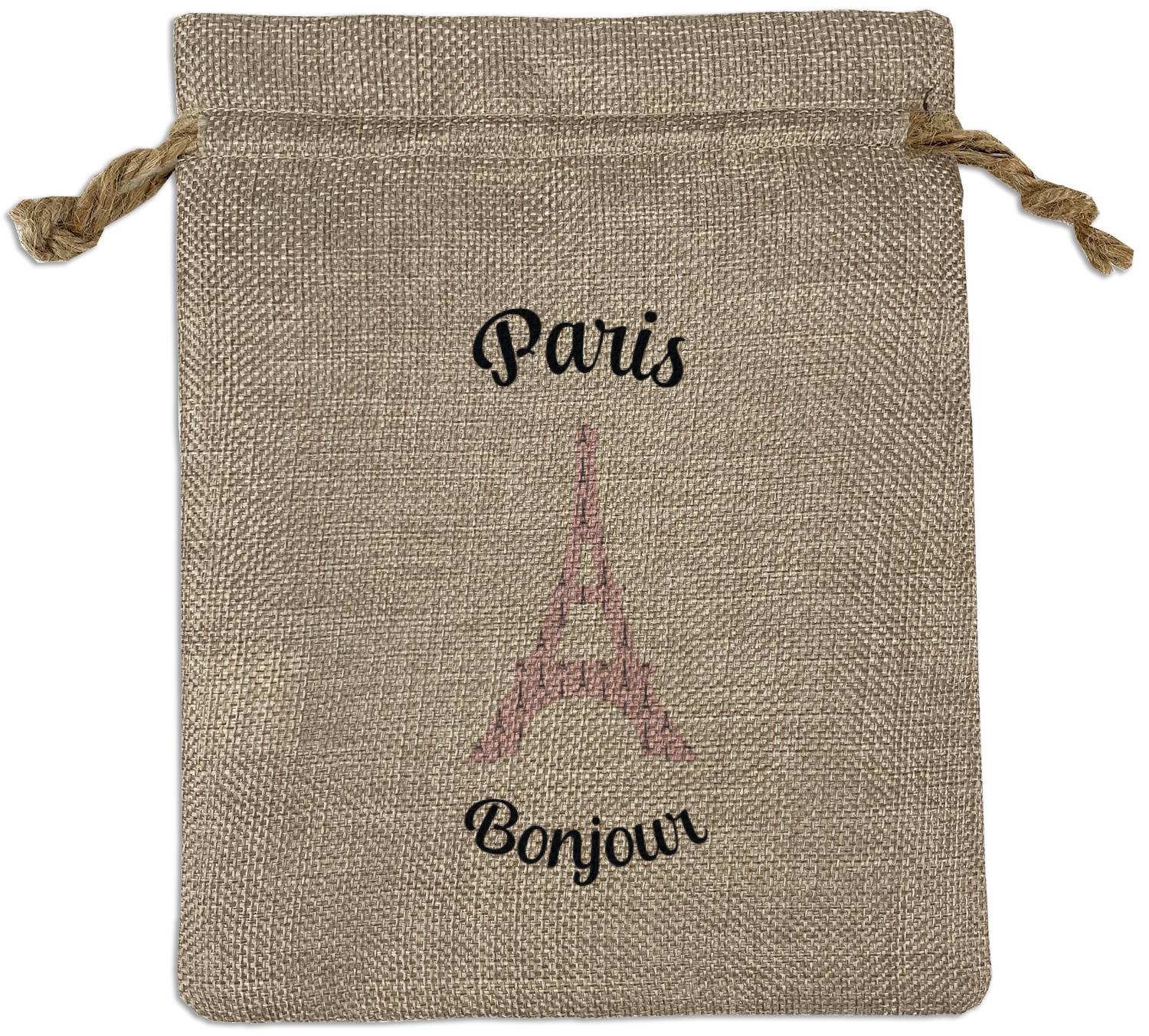 We sell our Burlap Gift Bags in 3 variant sized bags. Made with burlap polyester, each personalized bag can be secured with a twine drawstring pull. Your custom design is available to print on one side or both sides - completely up to you! The sizes of the bags measure approximately 4.5" x 6.5" for the smallest size, 6.5" x 8.0" for the medium size, and 6.5" x 13.5" for the large-sized bag.