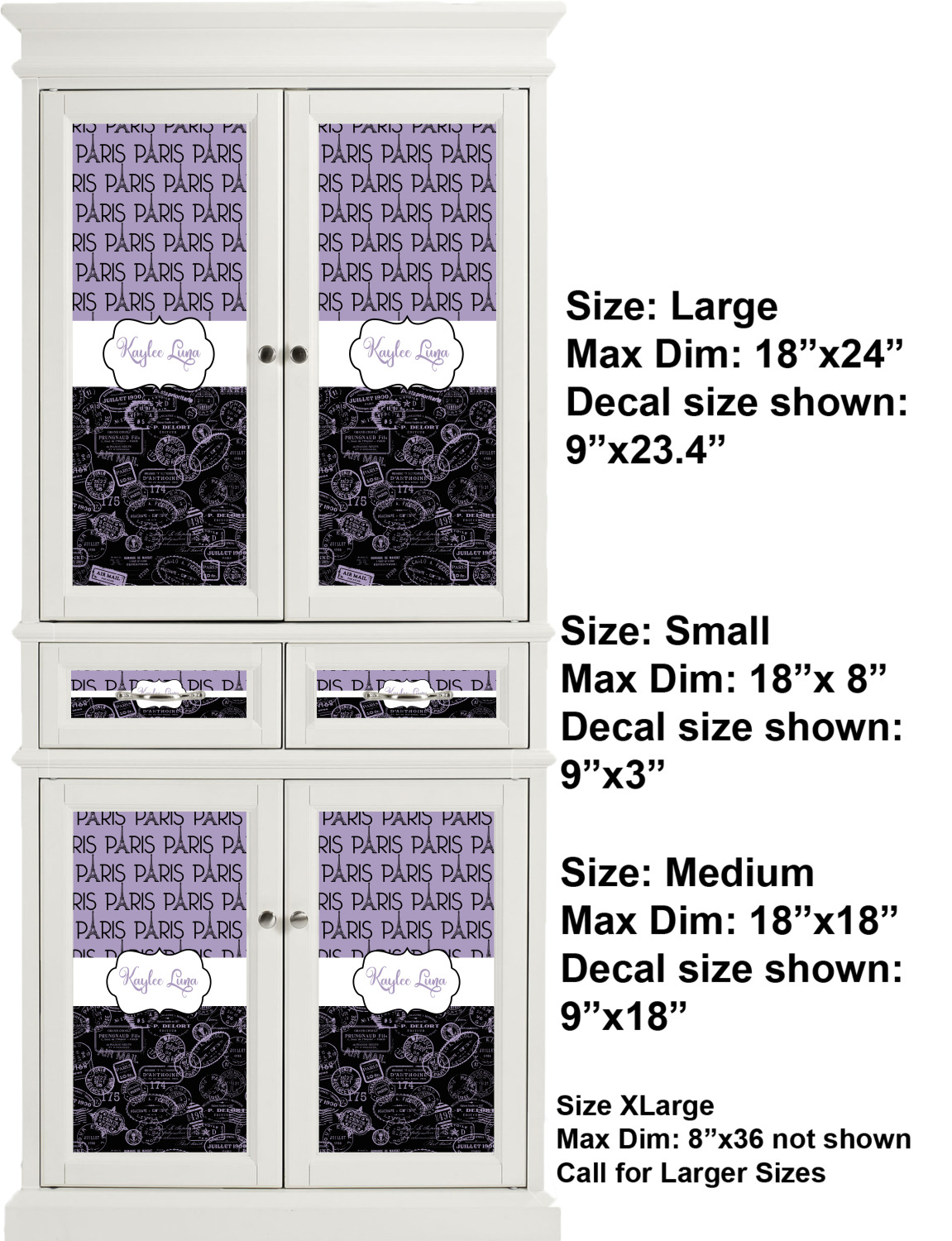 We print your customized design in full color, onto a high quality vinyl, covered with a glossy finish. For attachment to the cabinet, each cabinet sticker is accompanied by an easily applied, adhesive backing. The adhesive backing also guarantees a smooth removal or repositioning if desired. We sell these decals in four different sizes, but each size can be downsized appropriately to fit the needs of your kitchen. We offer a small, which is 18 by 8 inches, a medium, which is 18 by 18 inches, a large, at 24 by 18 inches, and an extra large, at 36 by 18 inches. We advise that you measure your cabinets first so you can make a properly informed purchase. For those who are interested in purchasing decals larger than 18 by 36 inches, please contact our team.