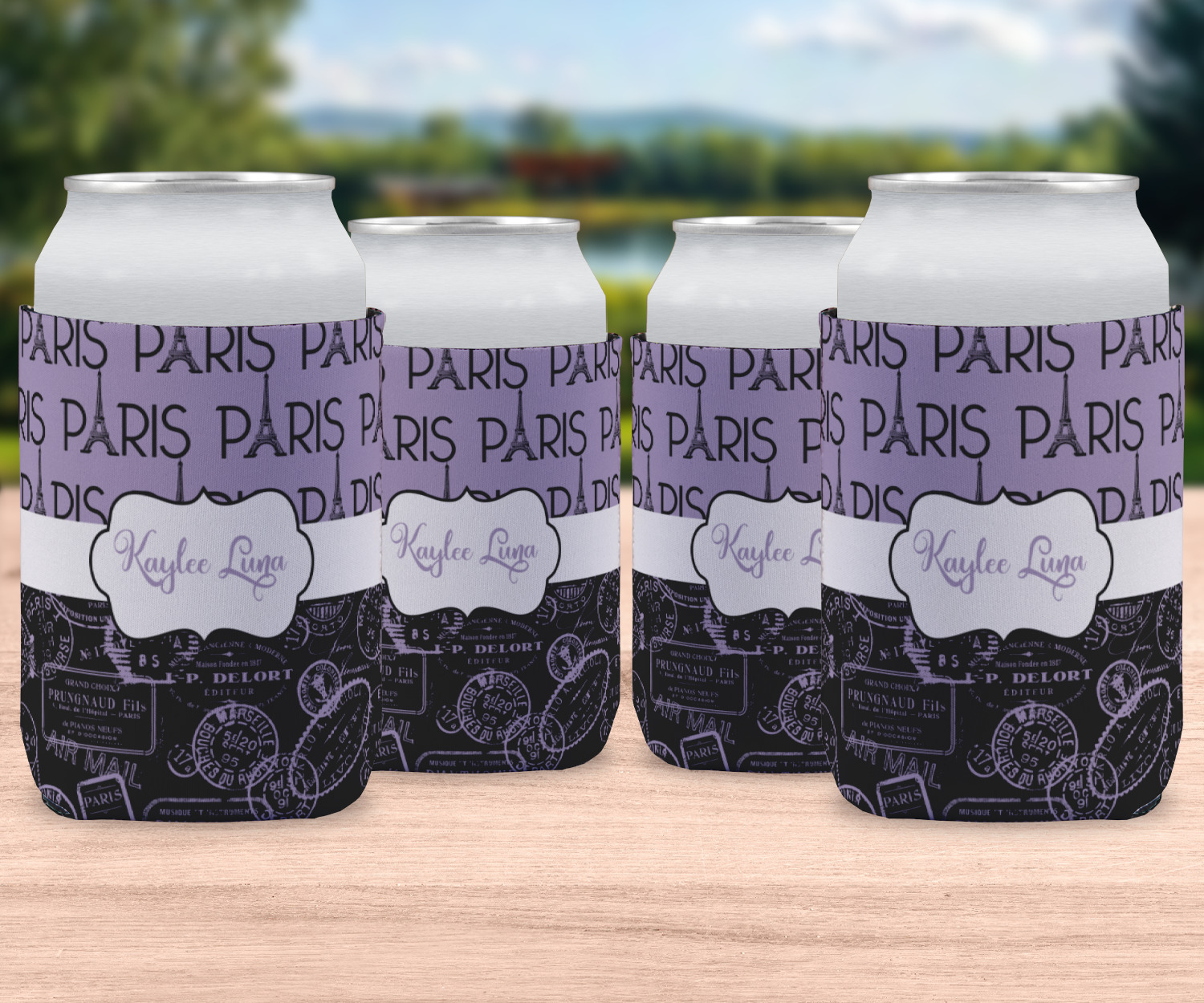A gorgeous wide black and white polka dot band adds a touch of French whimsy. The beautiful white label highlights the personalization of your choice.