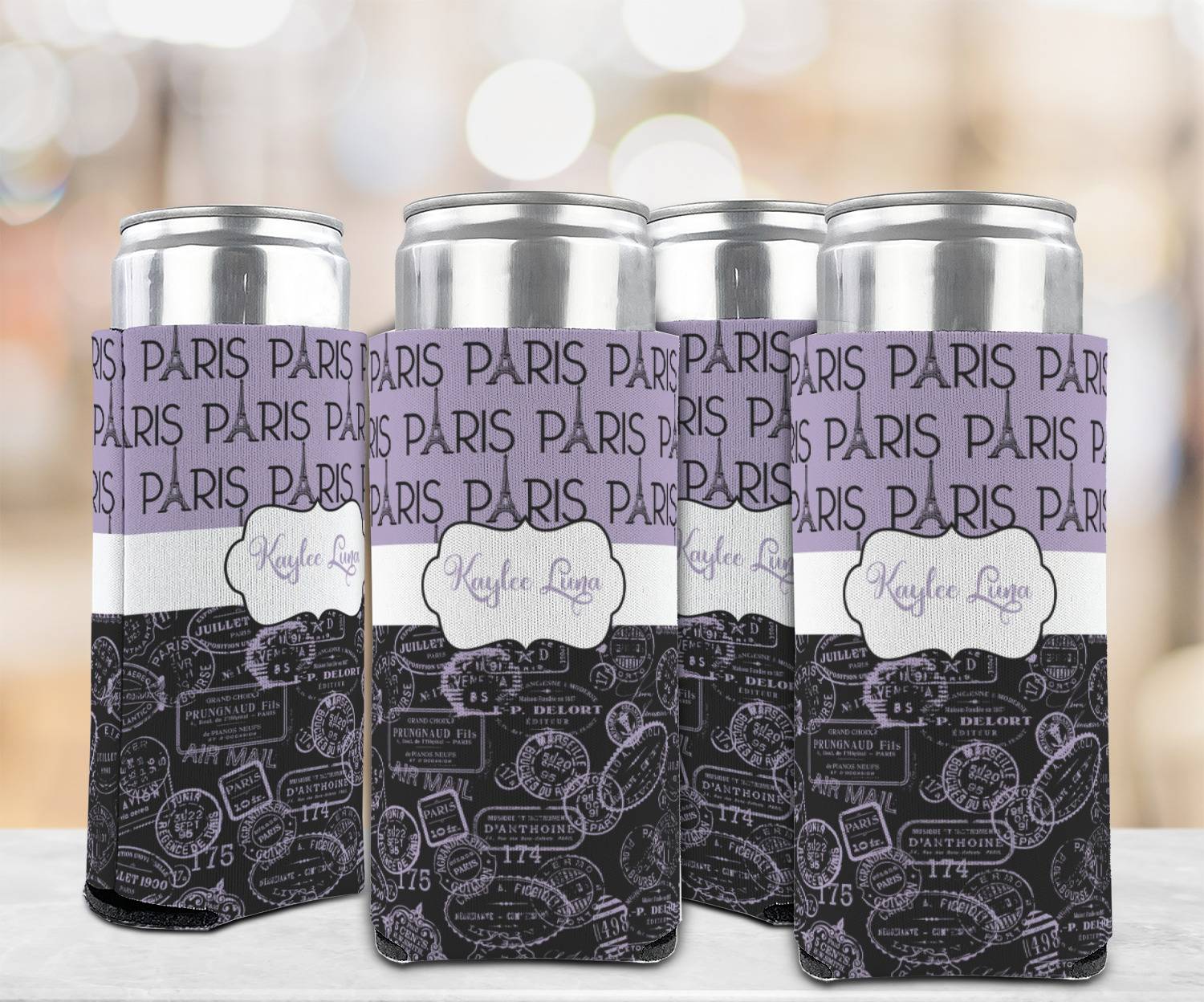 A gorgeous wide black and white polka dot band adds a touch of French whimsy. The beautiful white label highlights the personalization of your choice.