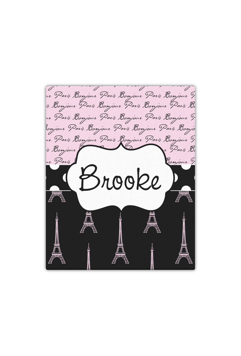 Ooh La La! Add a bit of Parisian elegance to your decor with this gorgeous French Eiffel Tower design. The top of the design features a delicate, soft pink background to feature the words "Bonjour" & "Paris" written in black graphic text. The bottom half of the design a black backdrop is use so that the iconic Eiffel Tower in pink come to life.