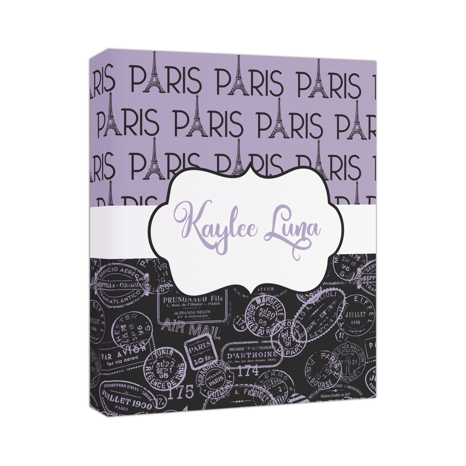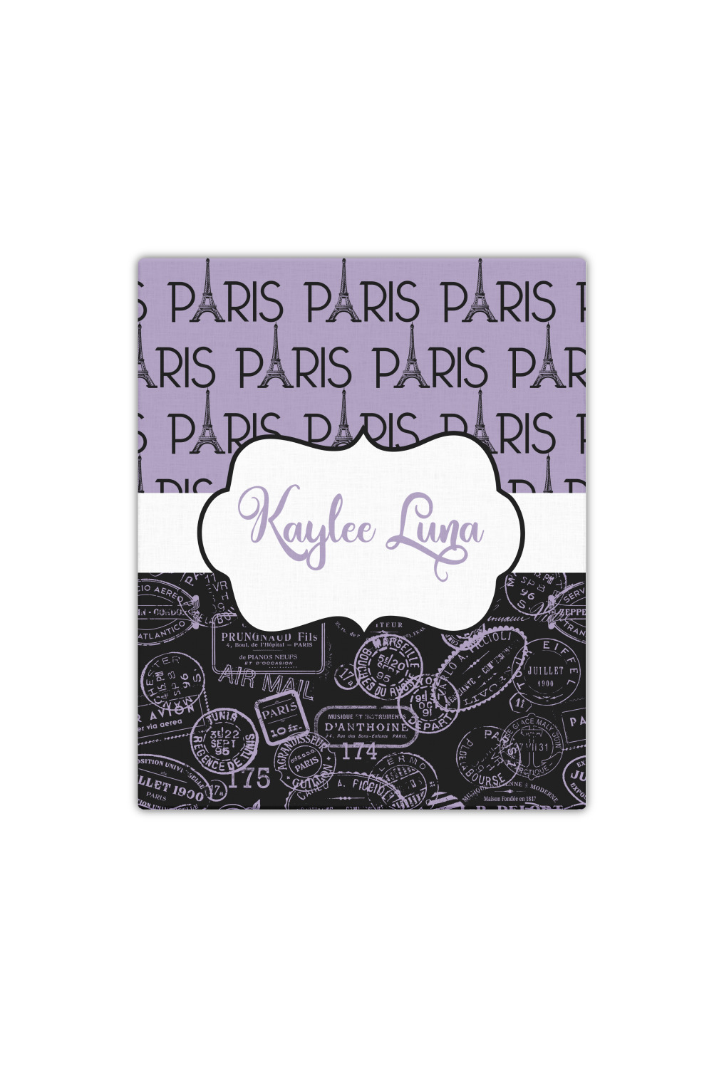 A gorgeous wide black and white polka dot band adds a touch of French whimsy. The beautiful white label highlights the personalization of your choice.