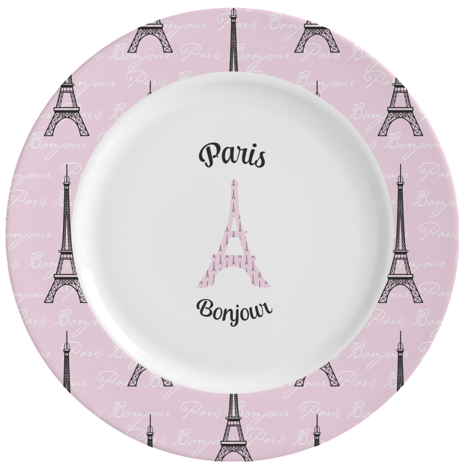 With this custom dinner plate, your have the option of personalizing the rim with an attractive pattern, and then displaying a name, graphic, or text in the center of the plate, against a white background. The exterior of this plate is also the same classic, white color. A glaze coats your plate, making your vividly colored design seem even more vibrant.
