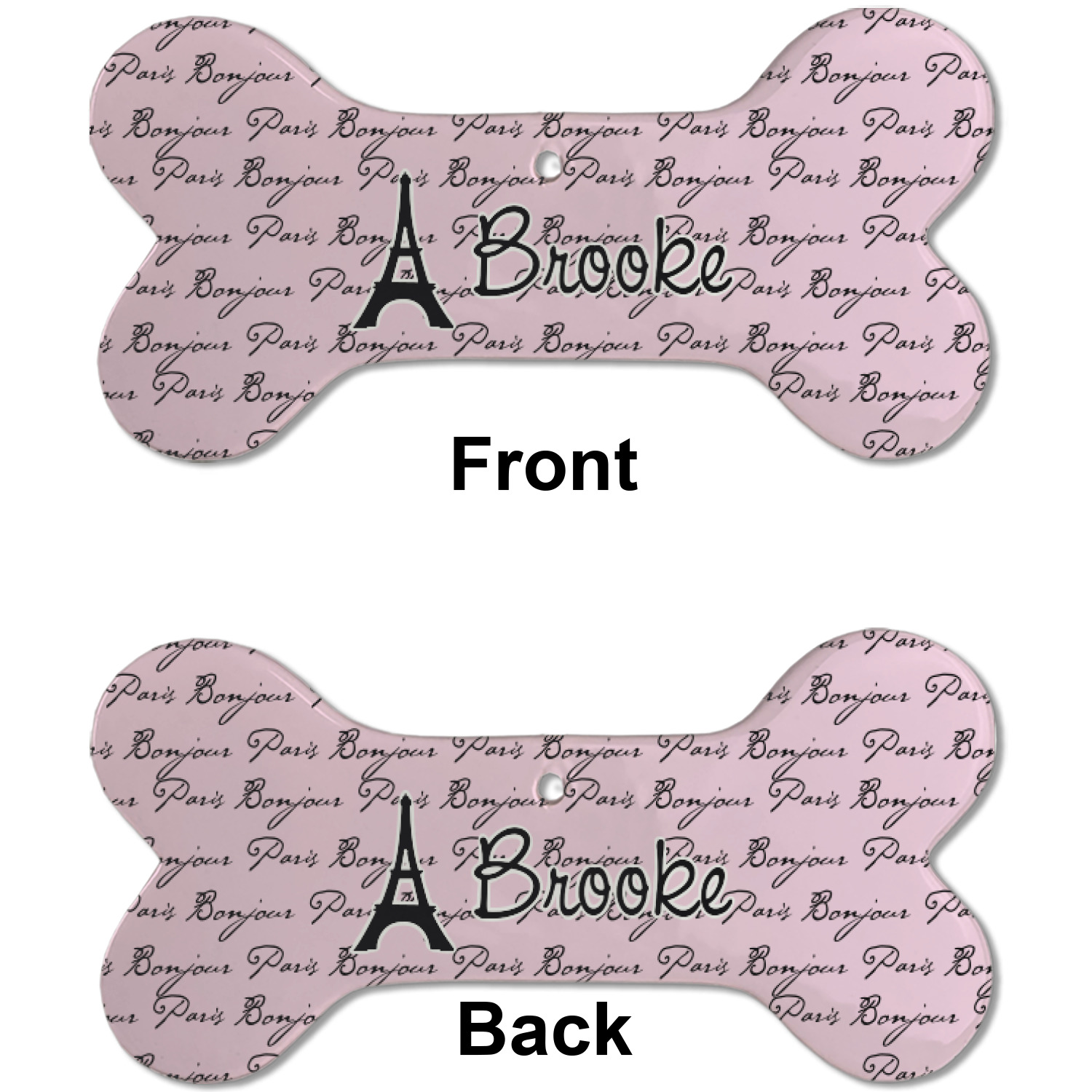 Our dog Christmas ornaments are a ceramic material with a bone-shaped structure hung horizontally. We offer two printing styles to personalize your furry friend's ornament! Choose a one-sided printing, perfect for wall decor, memorial accessory, or doghouse nameplate! Create a double-sided ornament perfect for adorning the Christmas tree. Each dog bone ornament is approximately 4.75" x 2.25" and is printed here in the USA.