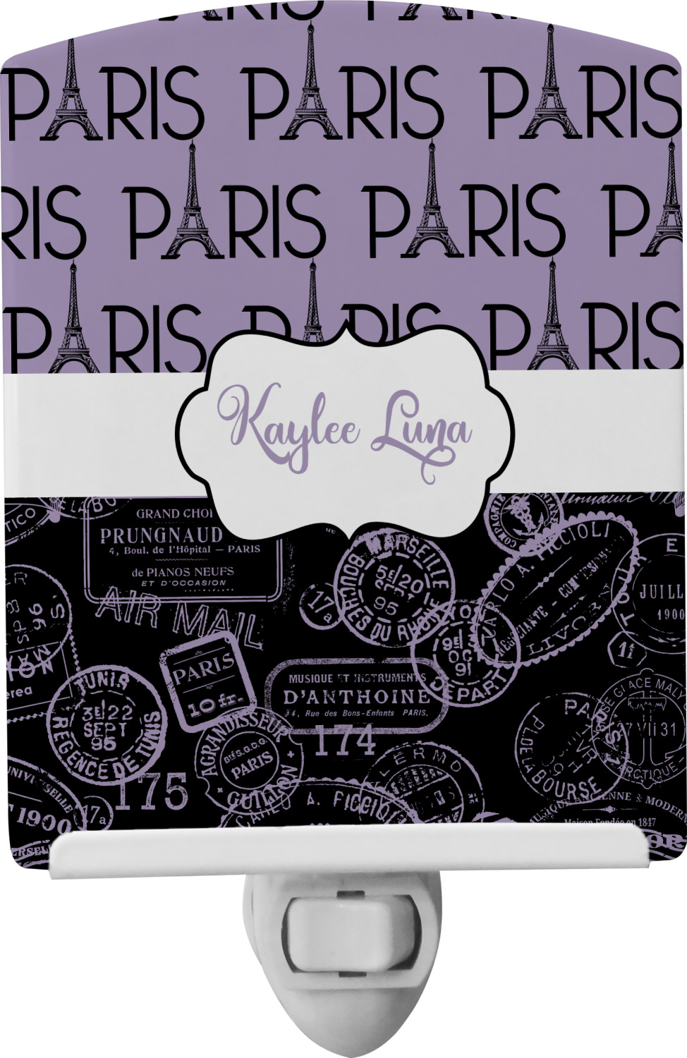 This baby night light is made of durable, ceramic plate that displays your customized design beneath a glossy finish. When this light is turned on, your personalization glows in the dark and offers a bit of light to any room or hallway. The plate also rotates easily. This plug-in night light has a white base with a convenient on and off switch. Additionally, the rotating plug allows you to plug them into US sockets horizontally or vertically. If your child outgrows the design years into the future, you can easily unscrew the plate and use it as a plain nightlight. With your purchase of this outlet night light, we include a 7-watt bulb.