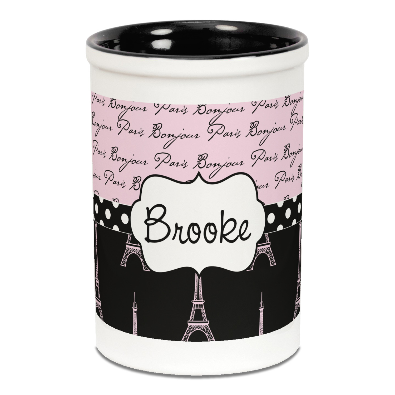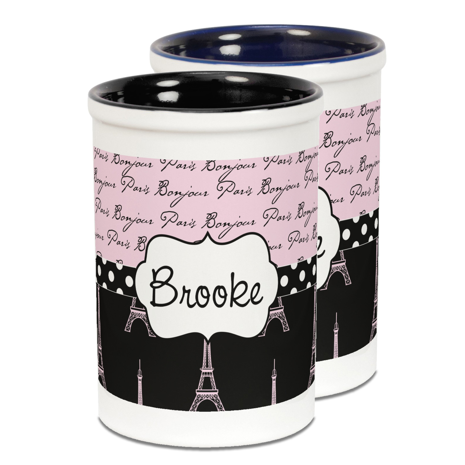 A gorgeous wide black and white polka dot band adds a touch of French whimsy. The beautiful white label highlights the personalization of your choice.
