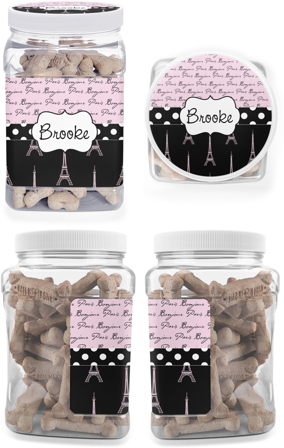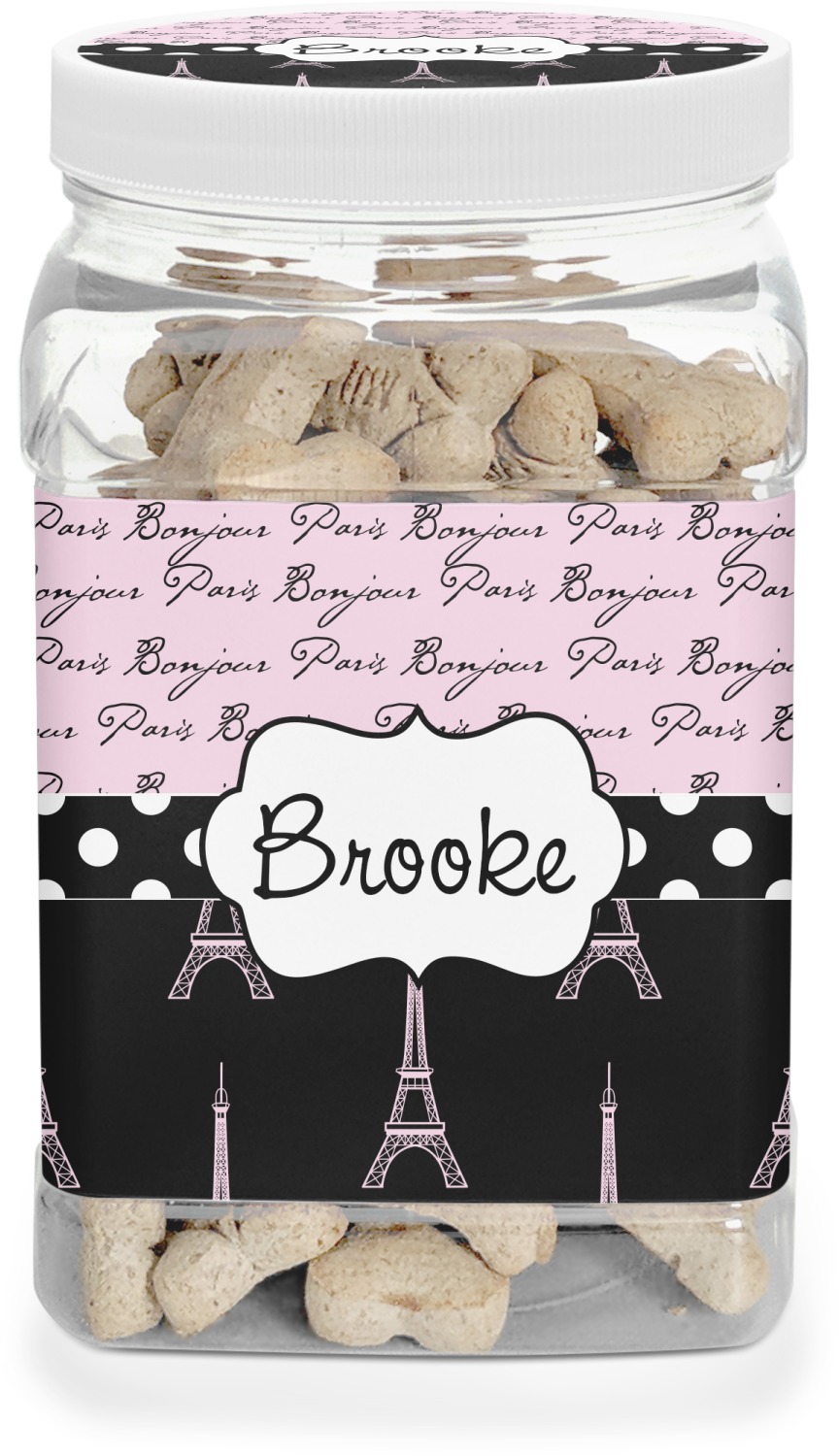 In the market for some other, cute pet supplies? Have a look at our Pet Accessories department, where you can customize a matching dog food bowl, dog food mat, or even a glass dog treat jar! Overjoyed with the idea of a customizable container? Explore the kitchen department within our Home and Garden category, where you can personalize snack containers for humans, as a gift, or just as a part of your kitchen decor!