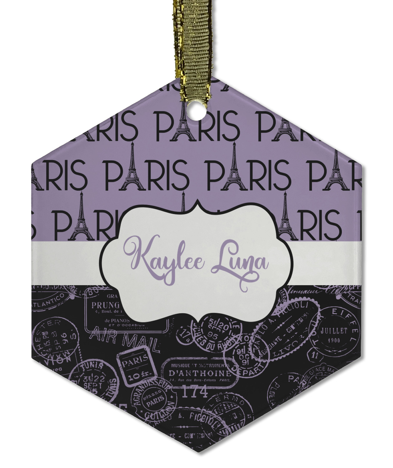 Each of our flat glass ornaments come with a gold string to hang on your Christmas tree with style! We offer two different shapes - flat, round ball or a hexagon. Both glass ornaments have a frosted coating on one side where we print your design while the other side is a clear gloss to give your personalized ornament a sheen finish. Our flat round glass ornament is approximately 3.5" x 3.5" while the flat hexagon ornaments are approximately 3.5" x 3".