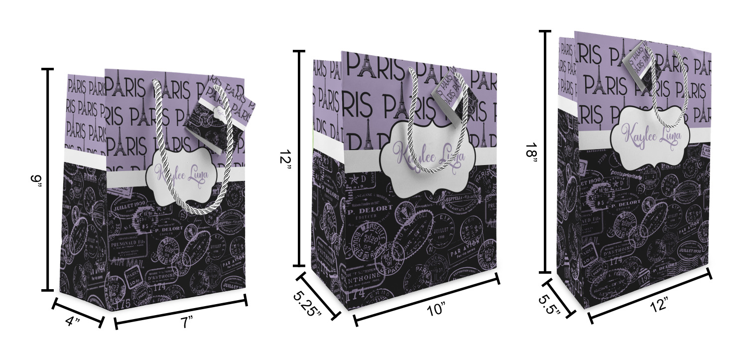 These custom gift bags come in your choice of 3 sizes. Their dimensions are below: