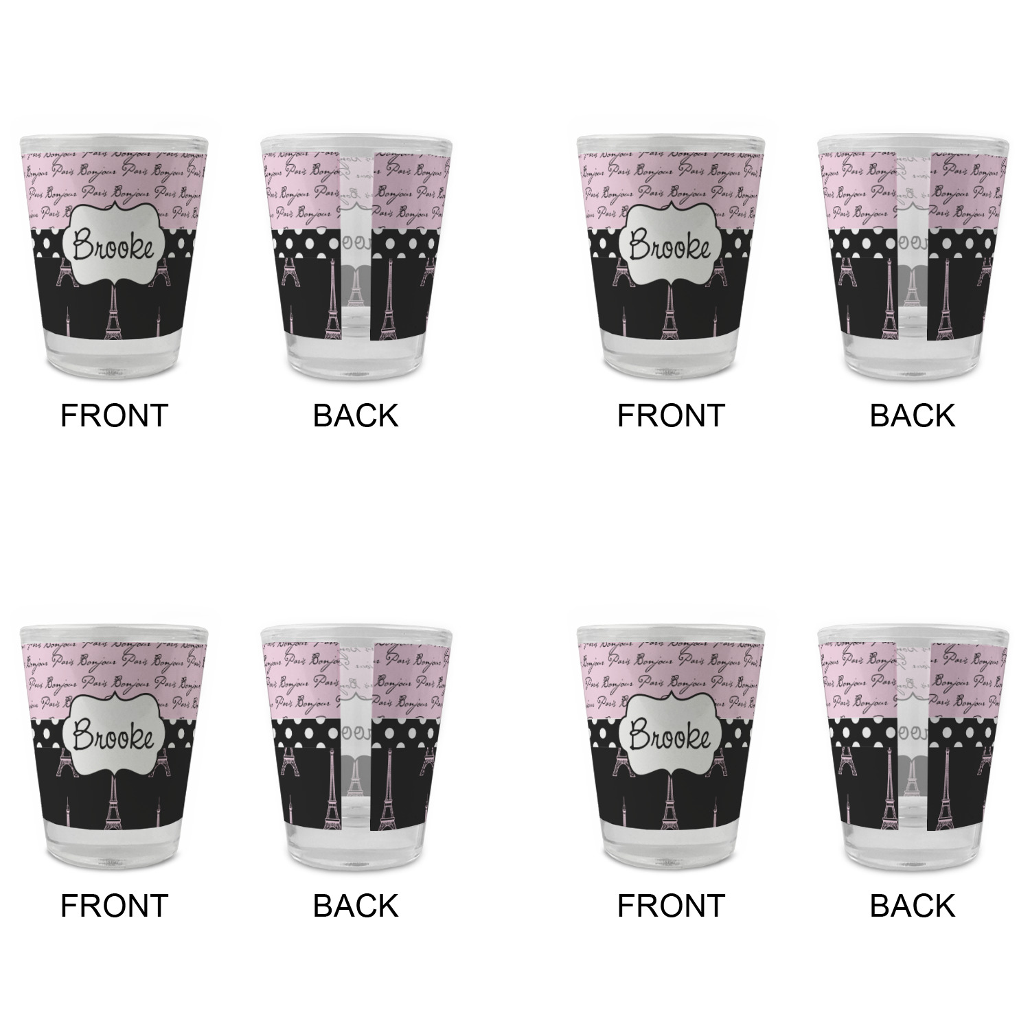 Made with frosted glass, these shot glasses are printed in full color with the design of your choice. They are a standard 1.5oz shot glass and are 2.4" tall. The print is wrapped around the shot glass in a full wrap and boldly displays your customization.
