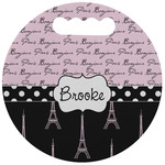 A gorgeous wide black and white polka dot band adds a touch of French whimsy. The beautiful white label highlights the personalization of your choice.