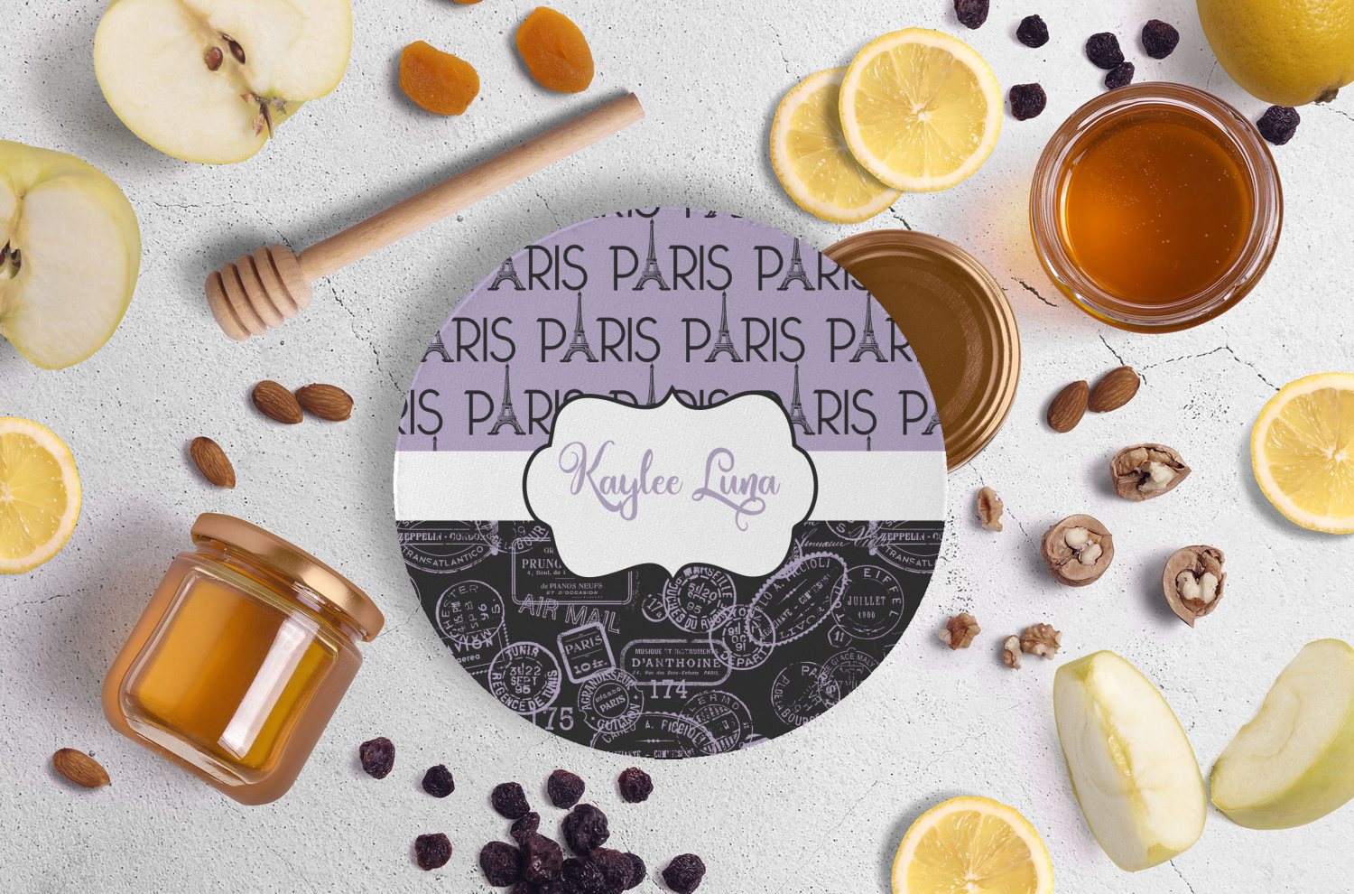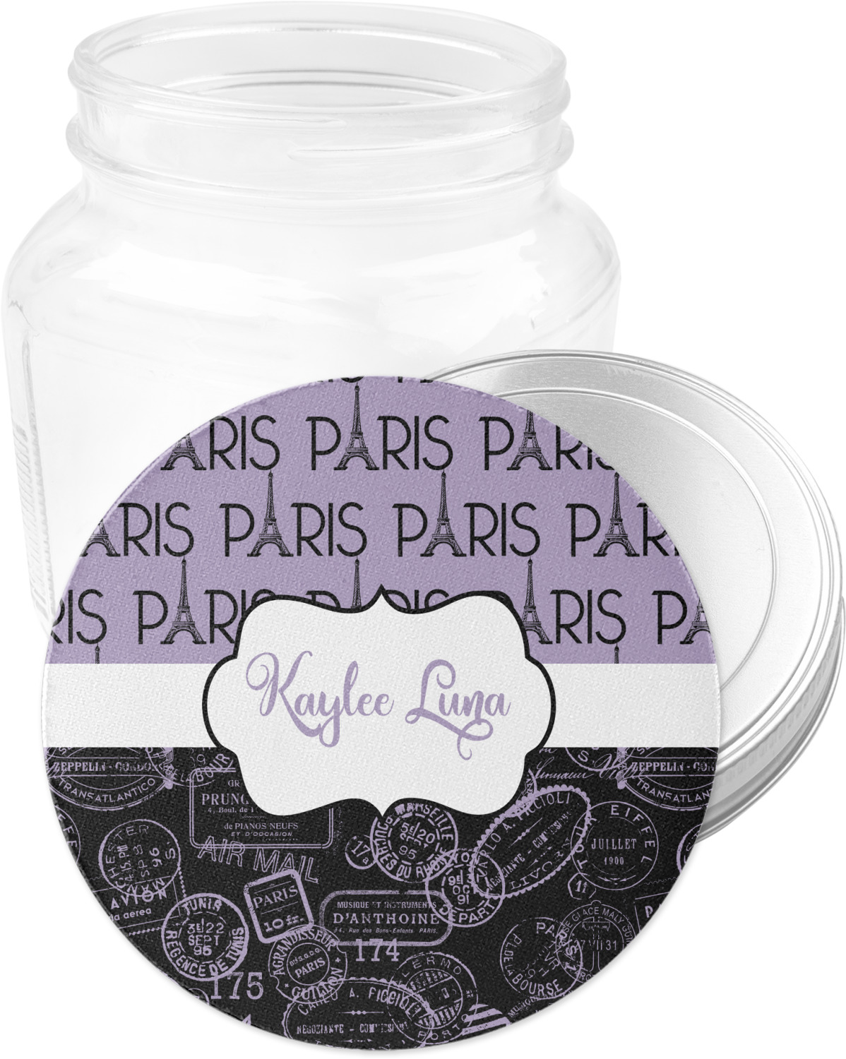 A gorgeous wide black and white polka dot band adds a touch of French whimsy. The beautiful white label highlights the personalization of your choice.