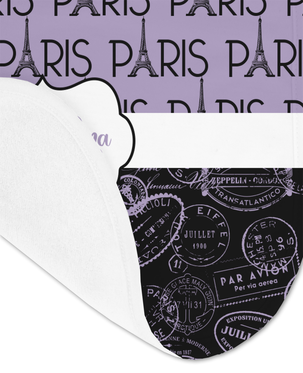 Made of soft polyester, each customizable bib hugs comfortably around the neck to catch every drip and drool. Each bib design is printed with baby-safe ink and finished with a secure stitch pattern and velcro clasp. We carry two customizable bib styles -Microfiber Velour and Jersey Knit.