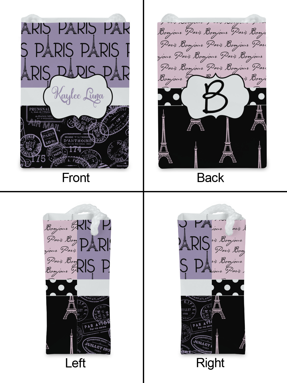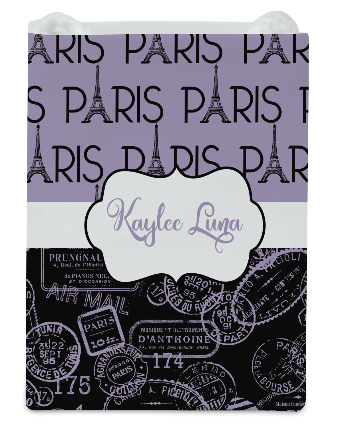 A gorgeous wide black and white polka dot band adds a touch of French whimsy. The beautiful white label highlights the personalization of your choice.