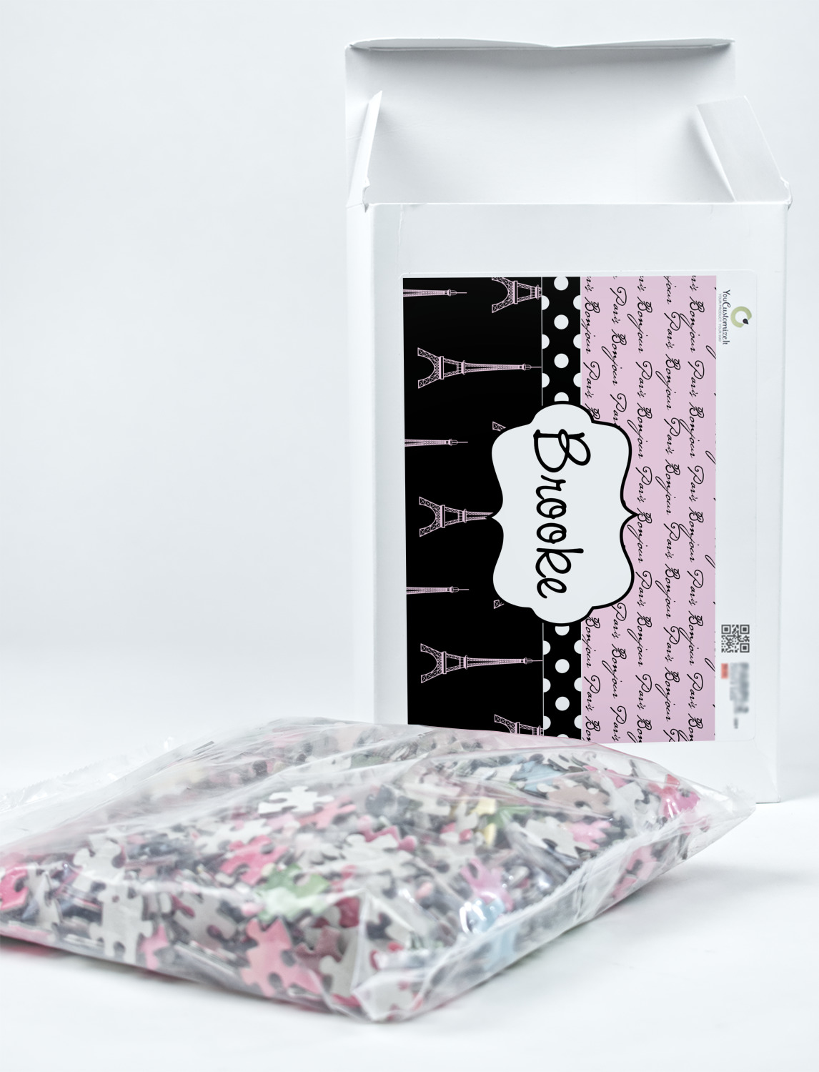 Depending on the look you are trying to achieve, you can add; a thematic pattern or background, with a photo in a frame and text or personalization to your puzzle. Basically if you can imagine it, you can design it!