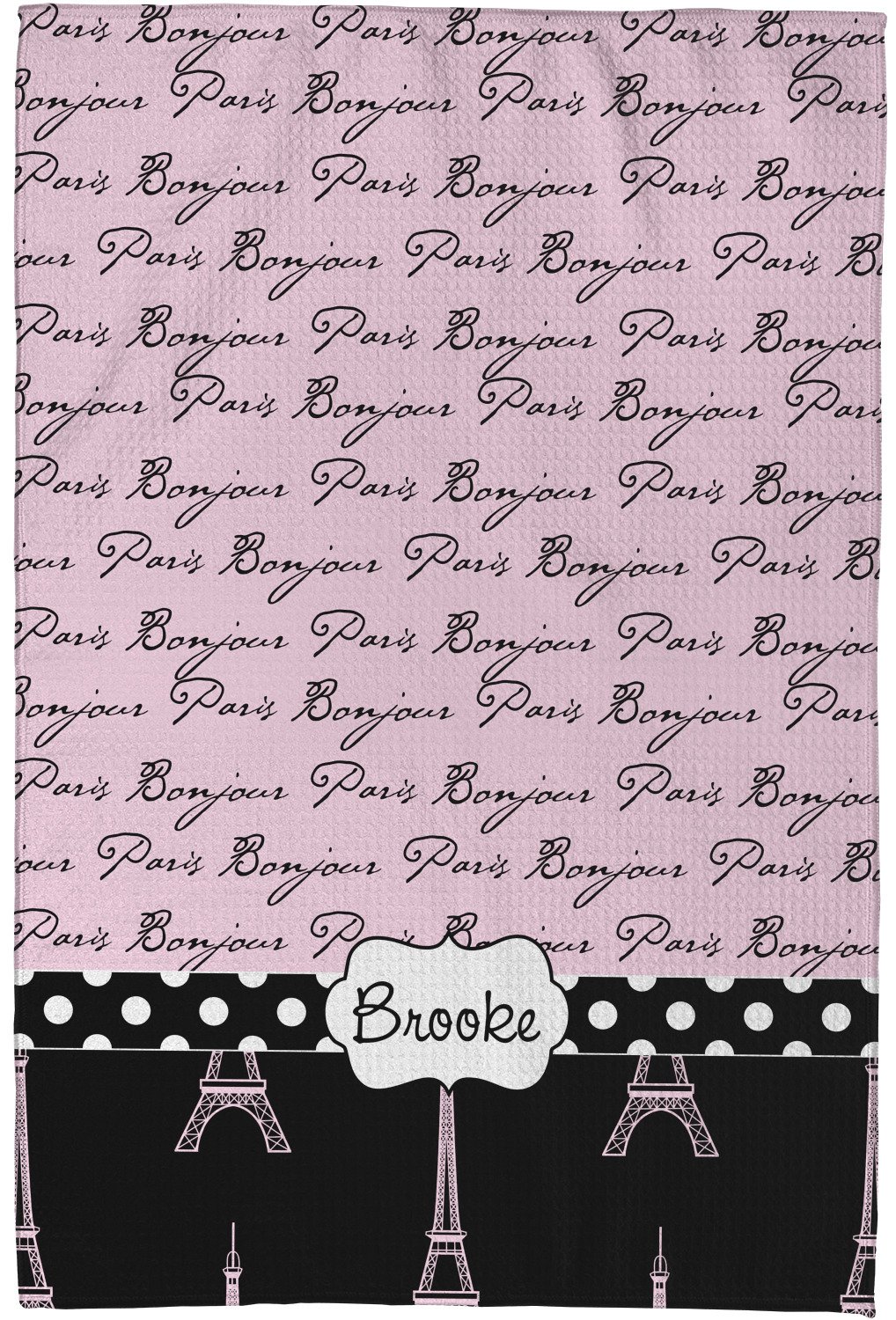 Ooh La La! Add a bit of Parisian elegance to your decor with this gorgeous French Eiffel Tower design. The top of the design features a delicate, soft pink background to feature the words "Bonjour" & "Paris" written in black graphic text. The bottom half of the design a black backdrop is use so that the iconic Eiffel Tower in pink come to life.