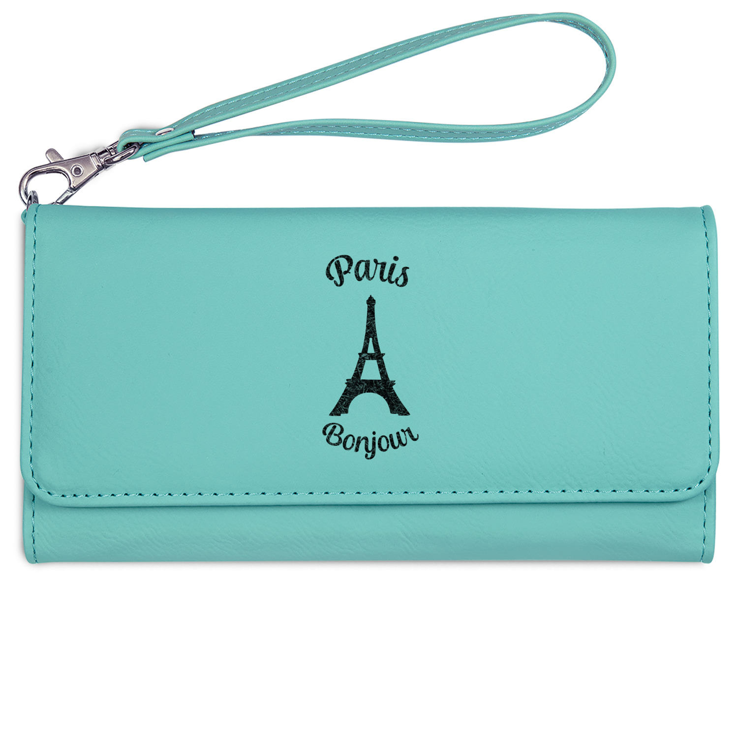 These personalized ladies leather wallets are available in 2 colors - rawhide / cognac and teal.