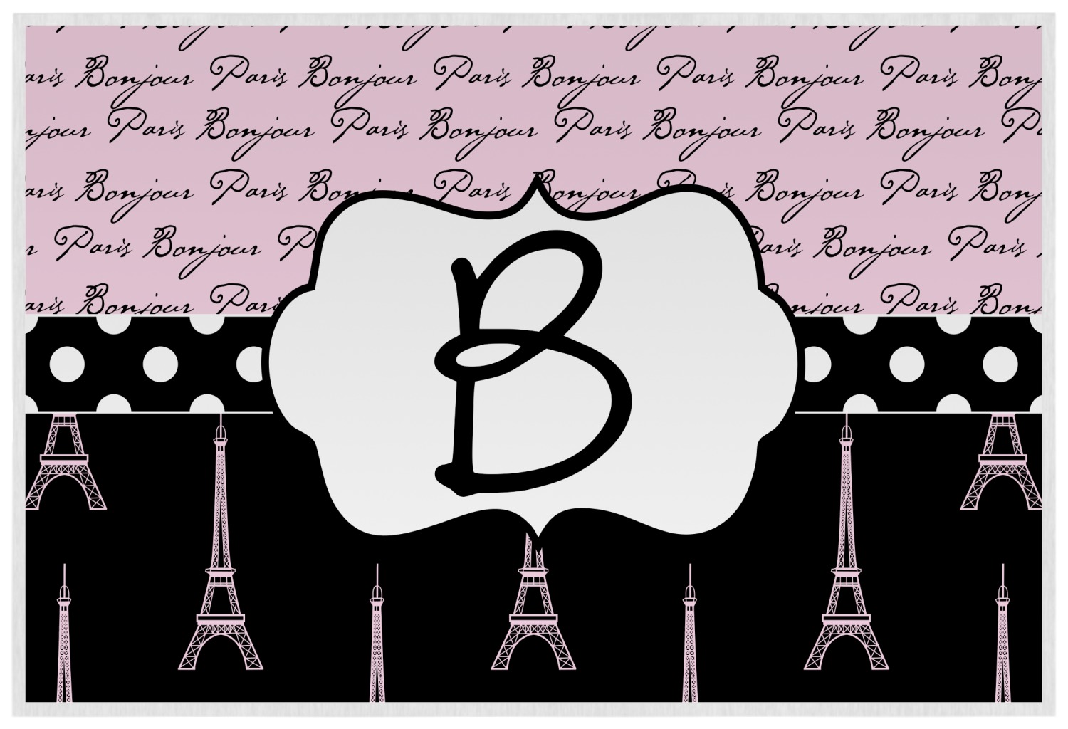 Ooh La La! Add a bit of Parisian elegance to your decor with this gorgeous French Eiffel Tower design. The top of the design features a delicate, soft pink background to feature the words "Bonjour" & "Paris" written in black graphic text. The bottom half of the design a black backdrop is use so that the iconic Eiffel Tower in pink come to life.