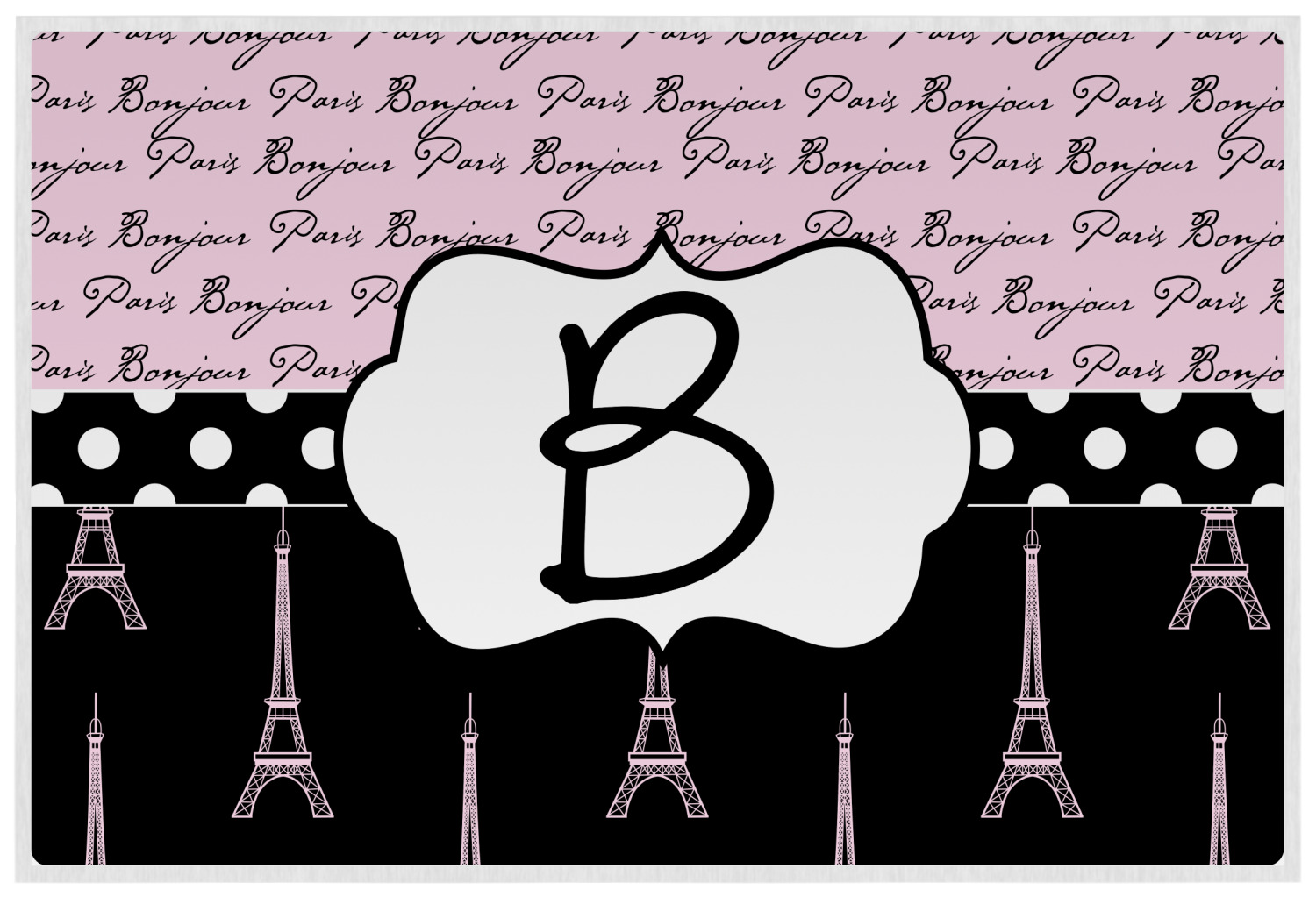 Ooh La La! Add a bit of Parisian elegance to your decor with this gorgeous French Eiffel Tower design. The top of the design features a delicate, soft pink background to feature the words "Bonjour" & "Paris" written in black graphic text. The bottom half of the design a black backdrop is use so that the iconic Eiffel Tower in pink come to life.