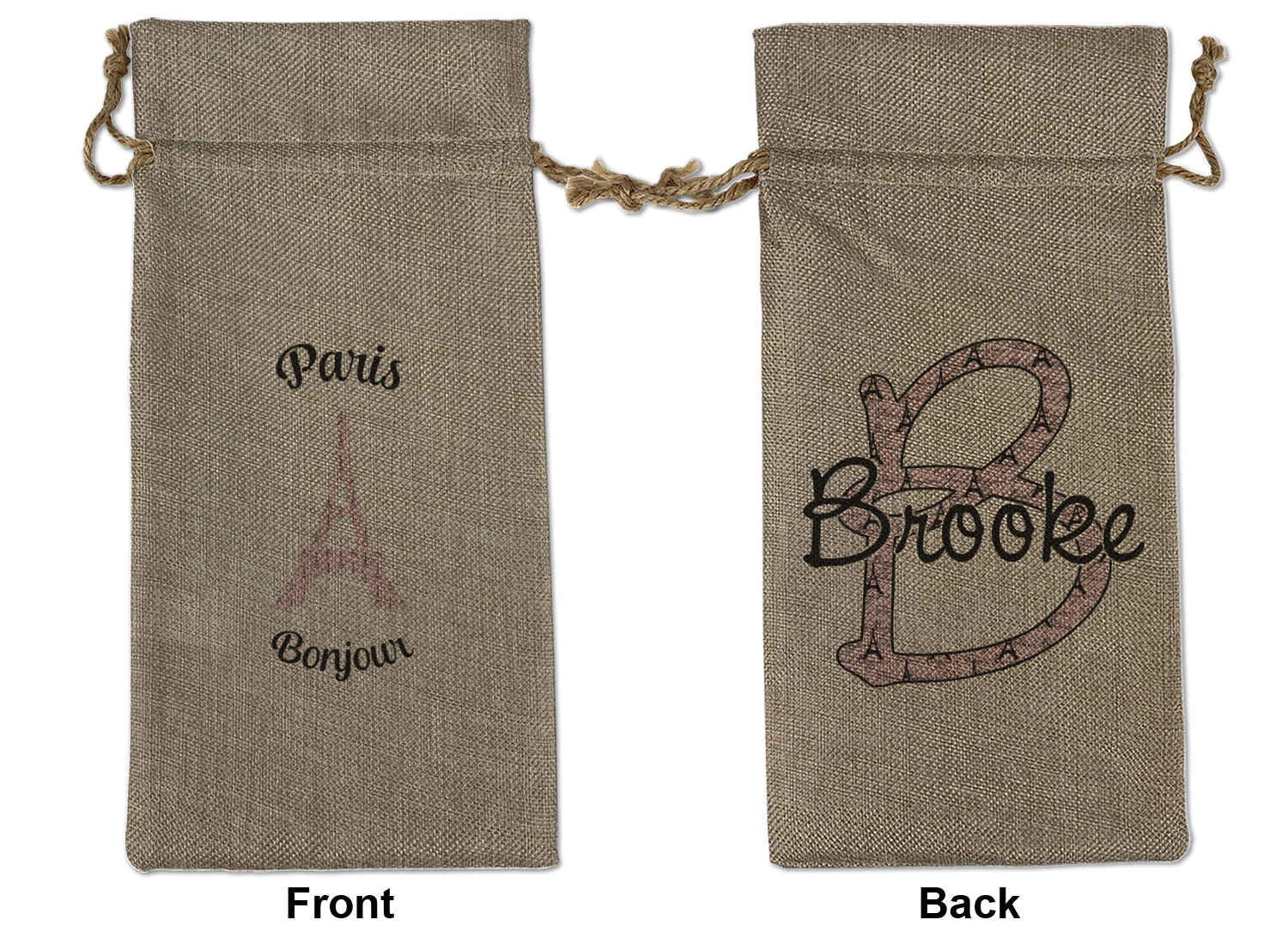 We sell our Burlap Gift Bags in 3 variant sized bags. Made with burlap polyester, each personalized bag can be secured with a twine drawstring pull. Your custom design is available to print on one side or both sides - completely up to you! The sizes of the bags measure approximately 4.5" x 6.5" for the smallest size, 6.5" x 8.0" for the medium size, and 6.5" x 13.5" for the large-sized bag.