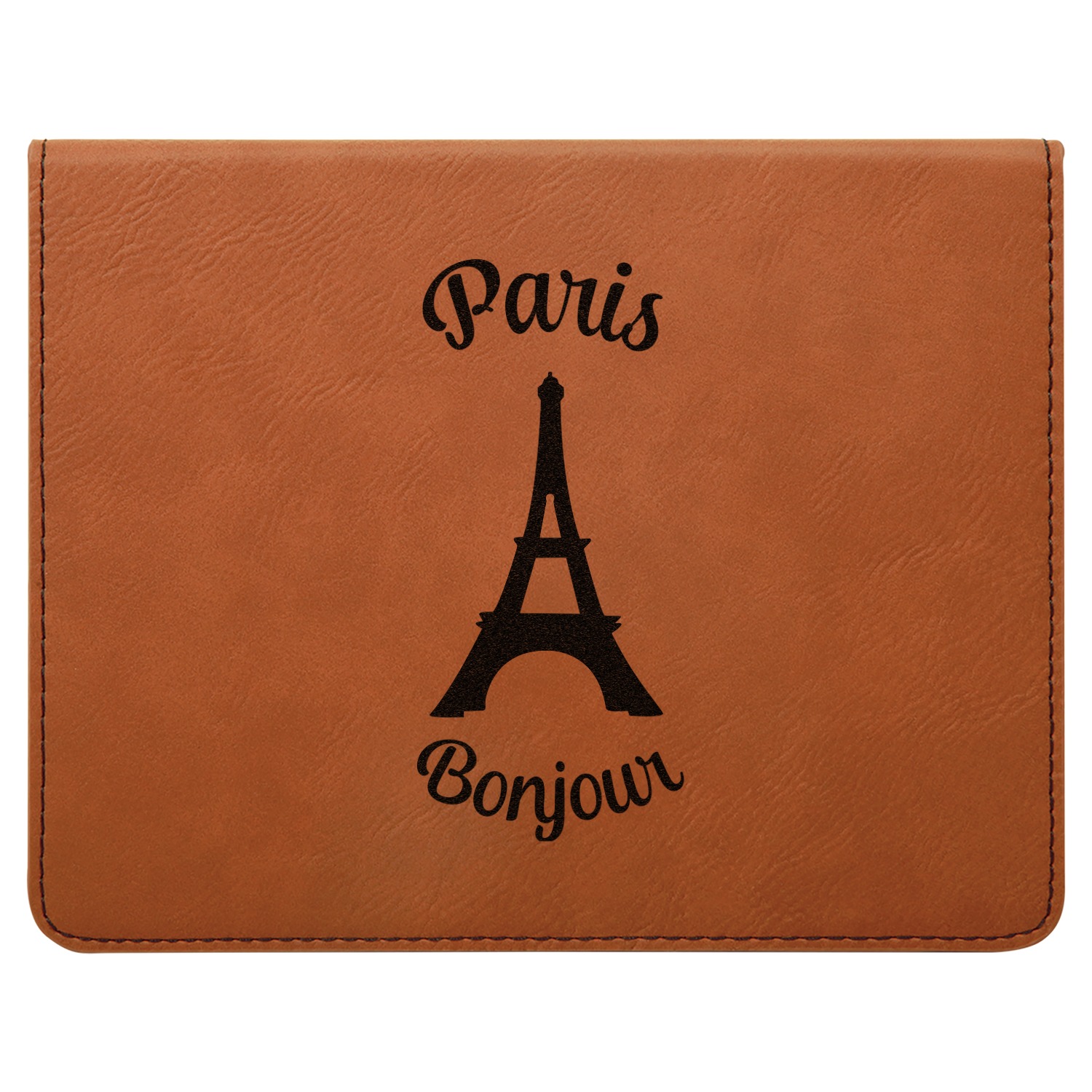 This set includes a wine stopper, pourer, drip ring, and a corkscrew! The exterior of the box is a gorgeous, cognac-brown leatherette, while the interior is covered in a black, velvety material. Four foam indentations, unique to the shape of the wine tool, are found at the bottom half of the box's interior. The tools fit snugly into each of their designated spots, and the foam material helps to protect the integrity of your tools. Each of the wine gadgets features a bamboo accent, with the location and style depending on the tool itself. We laser engrave your personalized design onto the lid of the box, which easily flips open and is secured closed by a small magnet. The wine accessories box measures at 7 by 5.5 inches in total.