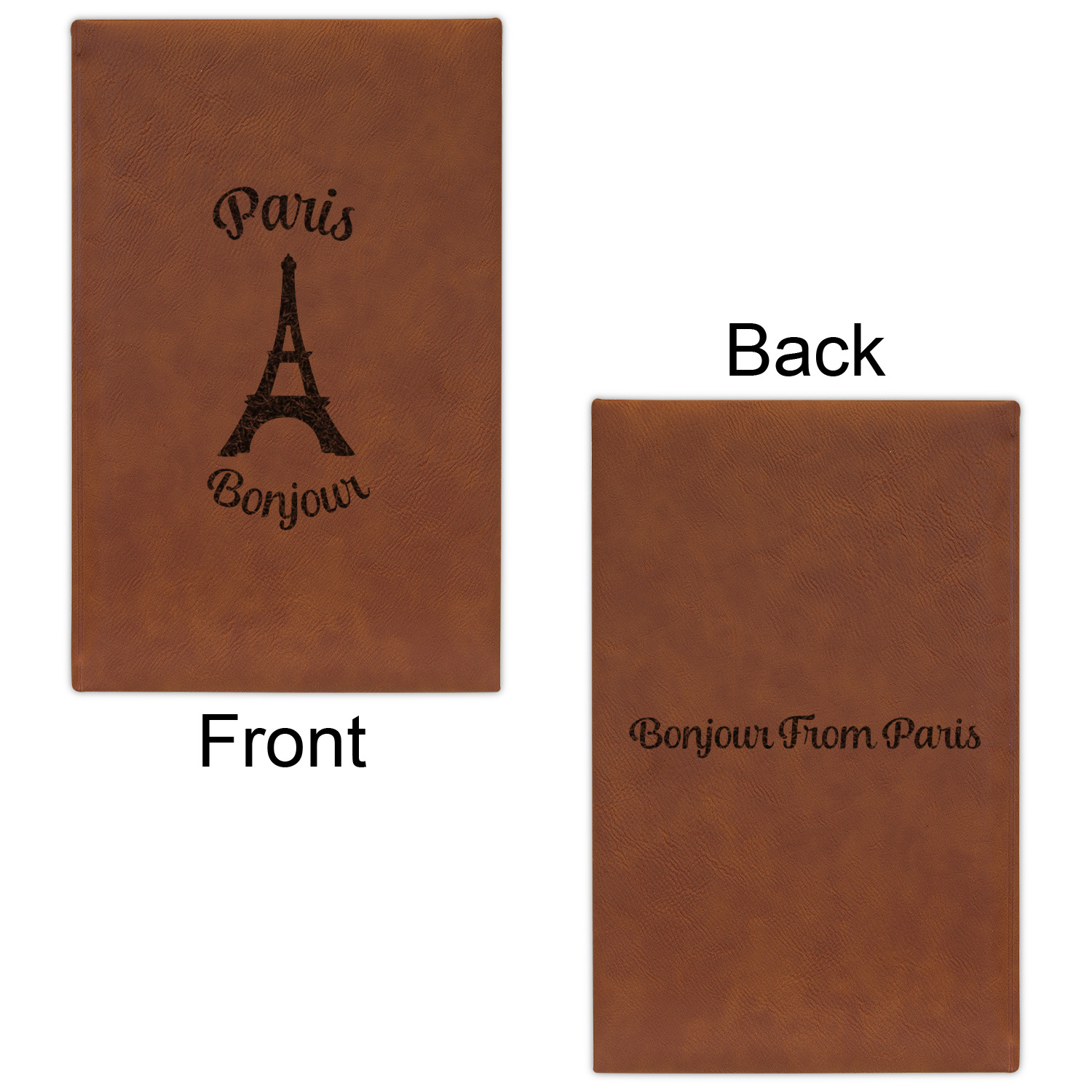 Available in two sizes - small at 8.25" x 5.25" and large at 9.75" x 7", these journal are the ideal size for purses and backpacks alike. Your personalized design is precisely laser engraved onto either the front, or the front and back of your new custom journal.