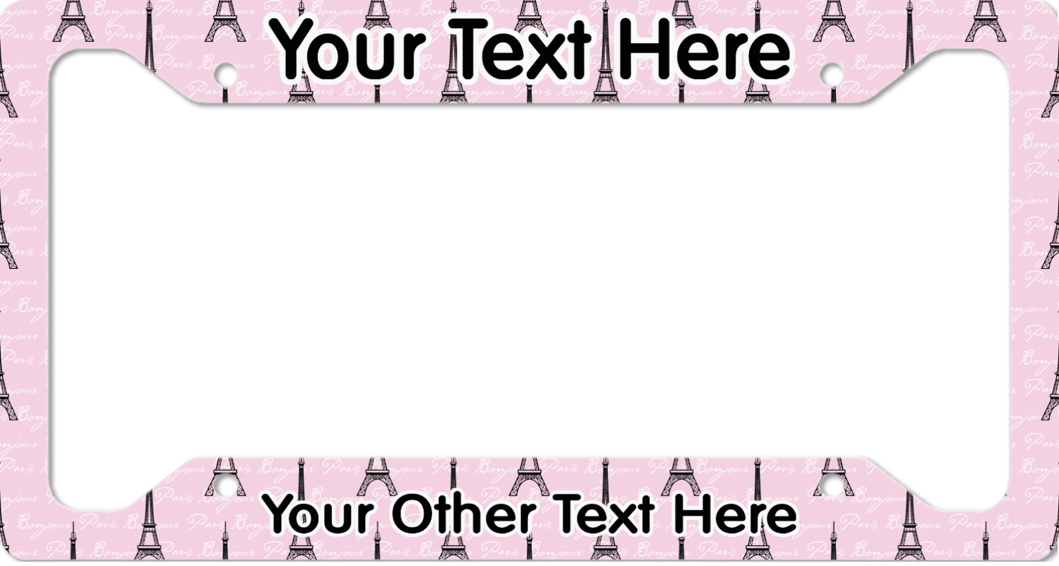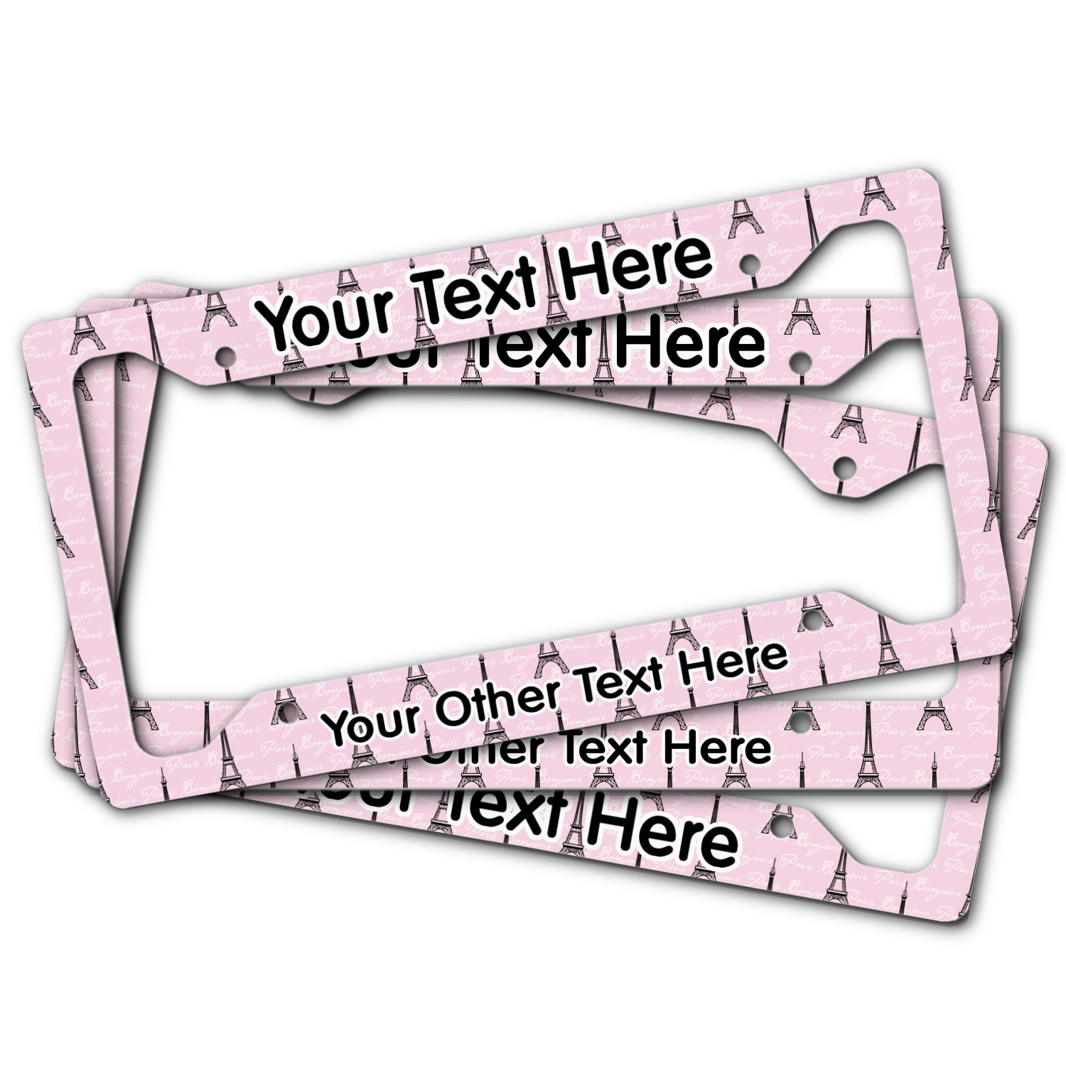 Each customizable license plate frame is made from a fine, yet sturdy aluminum material that measures approximately 6.5 x 12.15 inches, accommodating most standard license plates. The thickness allows the license plate frame to adhere completely to your license plate for a seamless look. We carry 3 styles of license plate frames to customize - Style A has texts on top and bottom, Style B offers texts on top and bottom as well as a full fill bottom border, and Style C offers text at the bottom only. The personalized license plate frame comes with four mounting holes for easy installation! We print each custom design across the frame with a glossy finish.