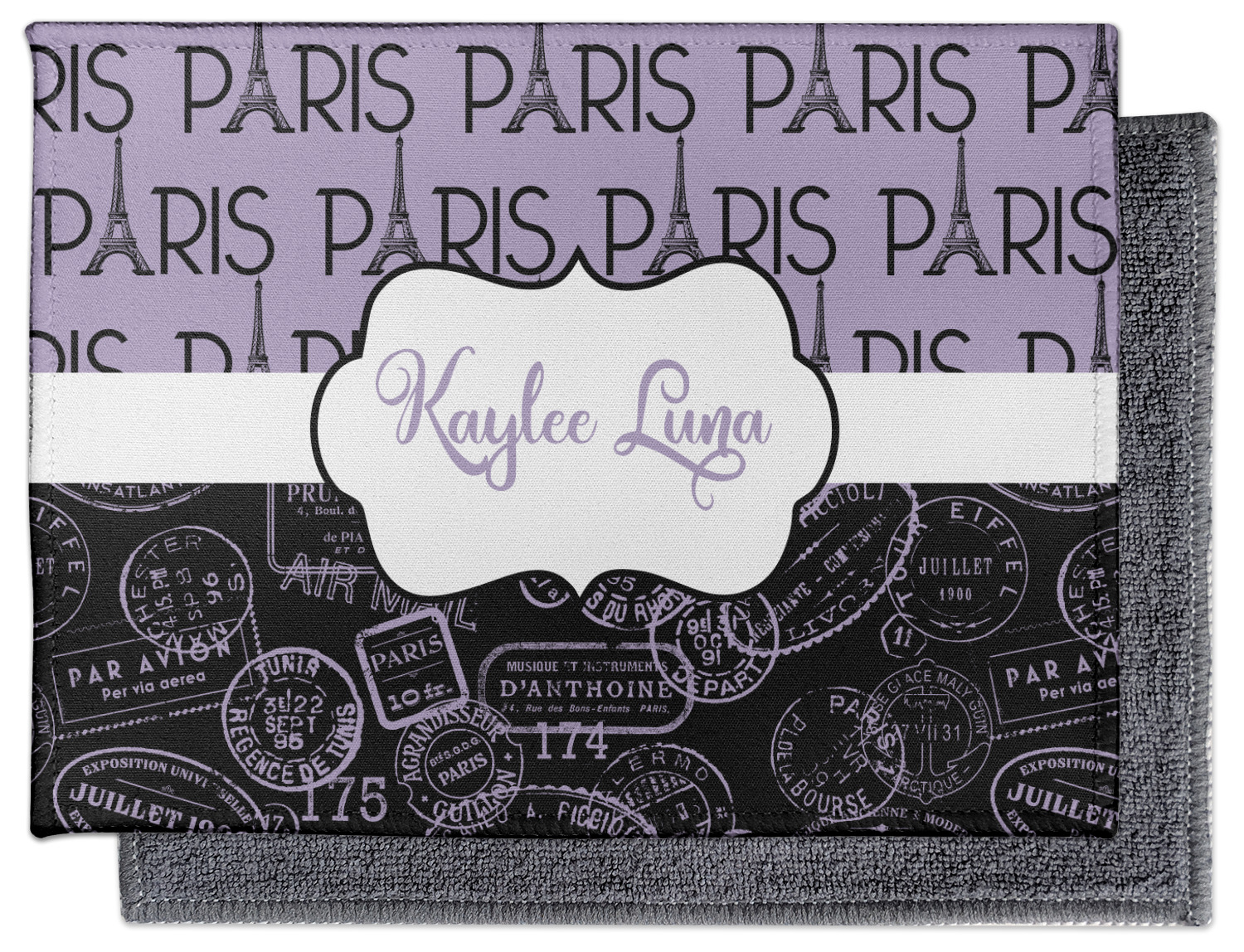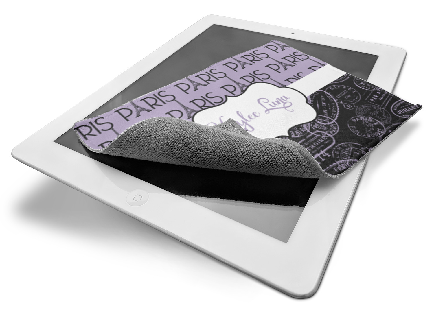 The back of this cleaning cloth is made from a gentle, grey microfiber material, that is masterful at removing smudges, grease, and fingerprints from lenses or electronic screens. The front side of the screen cleaner displays your personalized design in vibrant color. A beautiful stitch lines the edges and secures the microfiber to the polyester top. We provide you with the option of customizing this screen horizontally or vertically, depending on your preferences.