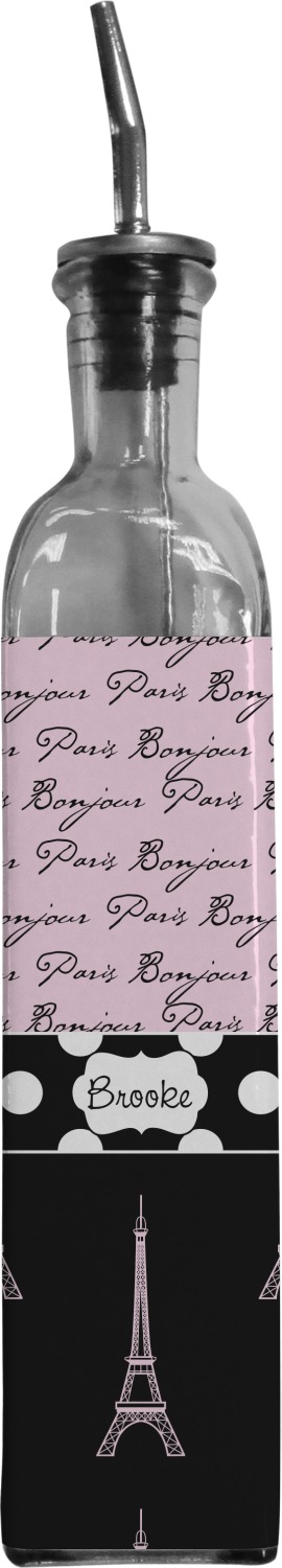 Made from recycled glass in Spain, these oil bottles have a classic, delicate look, and are accompanied by a metal spout for controlled pouring. Each bottle holds approximately 13 ounces and measures at 12 by 2 inches. We customize your glass oil bottle by applying your personalized design on the front and sides, using an adhesive. Our customizable stickers are made from high quality, gloss vinyl and are printed with waterproof, eco-solvent inks. These pieces are machine cut for accuracy and symmetry. The result is a robust, waterproof, adhesive decal that will not fade or deteriorate with time.