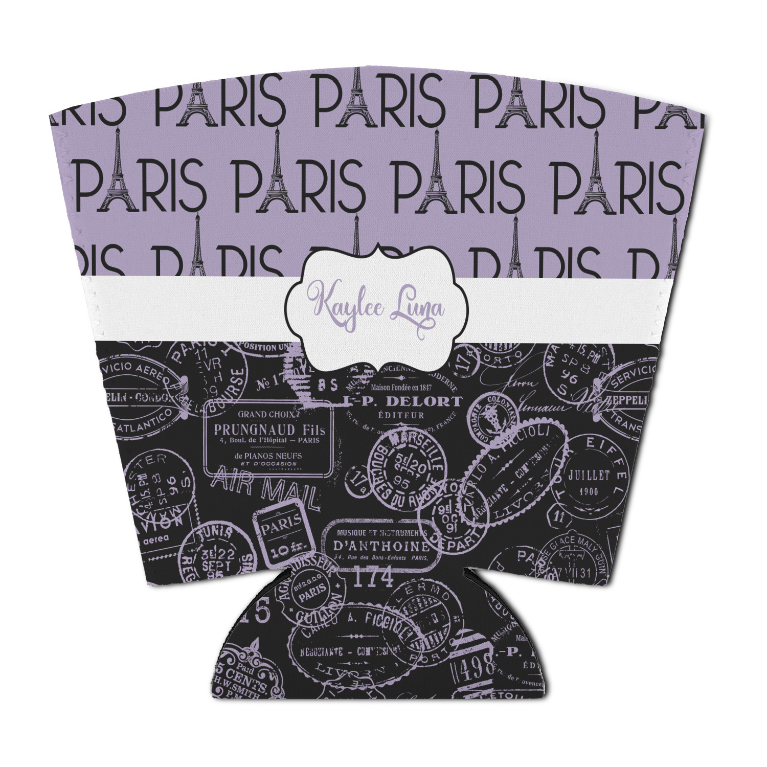 A gorgeous wide black and white polka dot band adds a touch of French whimsy. The beautiful white label highlights the personalization of your choice.