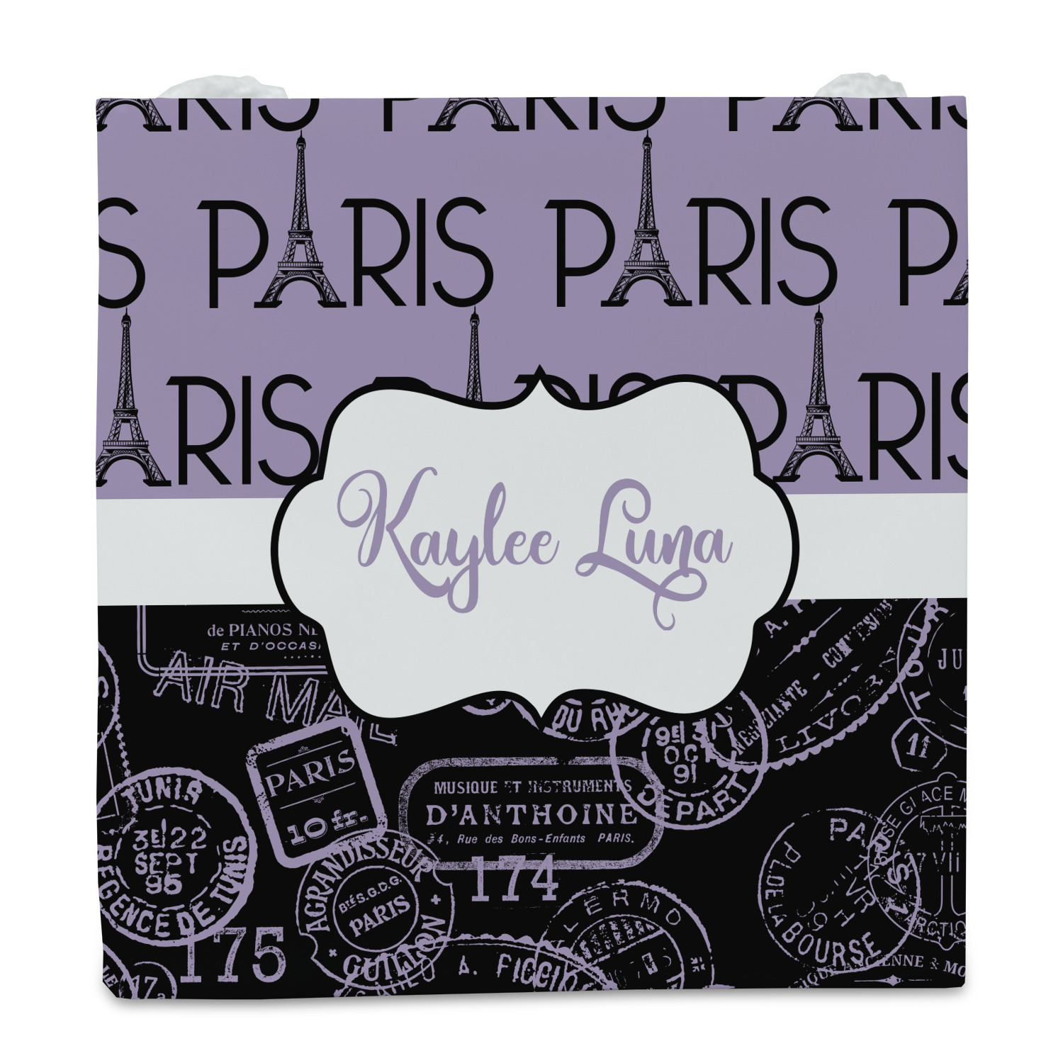 A gorgeous wide black and white polka dot band adds a touch of French whimsy. The beautiful white label highlights the personalization of your choice.
