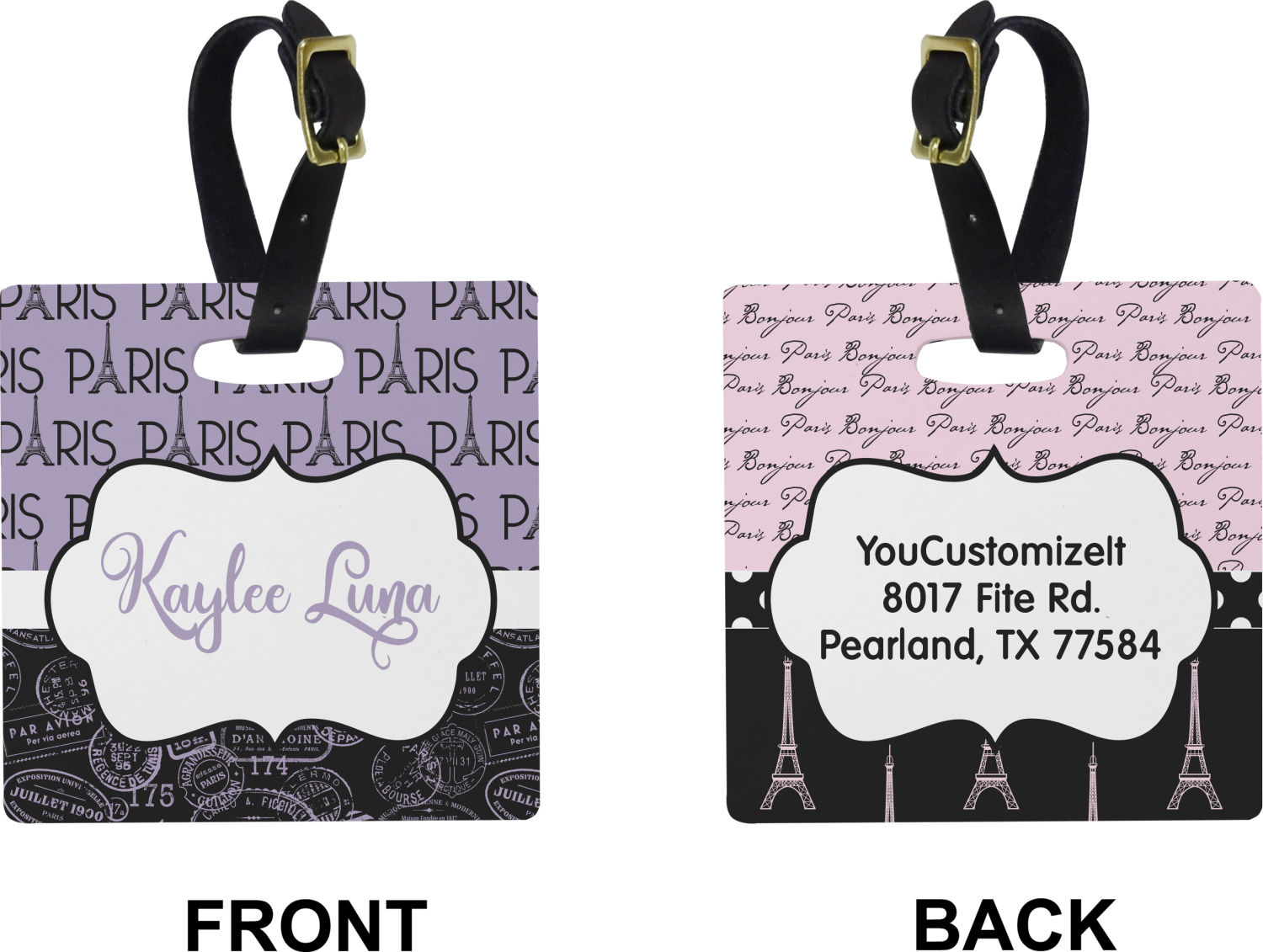 These cute luggage tags are made of a fiber-reinforced, UV-resistant plastic, making them waterproof and durable enough for both everyday use and the rugged adventures of any traveler! A leather strap with holes and a buckle is included with your purchase and can be used to attach your custom luggage tag to any suitcase, backpack, or duffel bag. You can design these travel tags as you wish; your customization will be displayed across the front, while the back will show as little or as much personal information as you want.