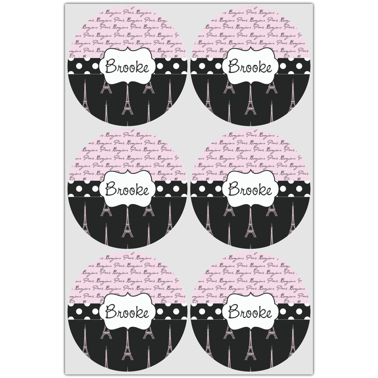 A gorgeous wide black and white polka dot band adds a touch of French whimsy. The beautiful white label highlights the personalization of your choice.