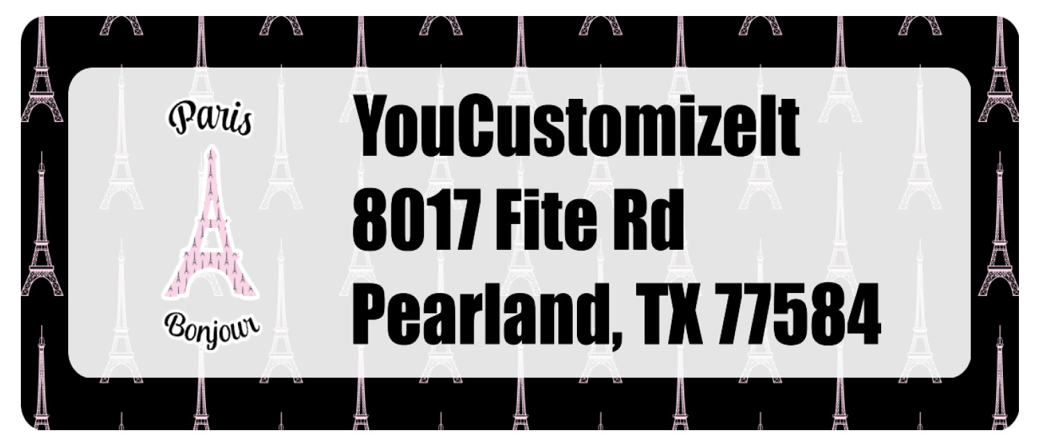 Made of a professional grade, vinyl sticker material, these custom return address labels are shaped into rectangles, but the beautifully rounded edges give the address labels an elegant finish. These mailing labels are printed onto three sheets, with each sheet having 27 labels, resulting in 81 labels in total. With our return address stickers, you're able to customize your address (which is printed on a white background), the graphic accompanying your address, and the border surrounding your address.