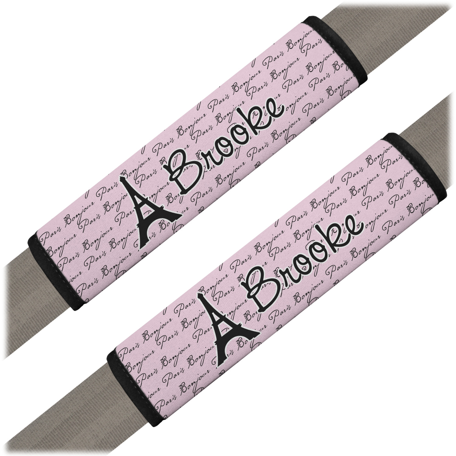 Made from neoprene, our seat belt strap covers wrap around the belt itself and have a Velcro tab for easy attachment and closure. The belt's edges are trimmed with a black polyester for a secure finish. Each cover is 9.5 by 7 inches when open and 9.5 by 2.5 inches when closed. We print your personalized design on the face of the seat belt pad.