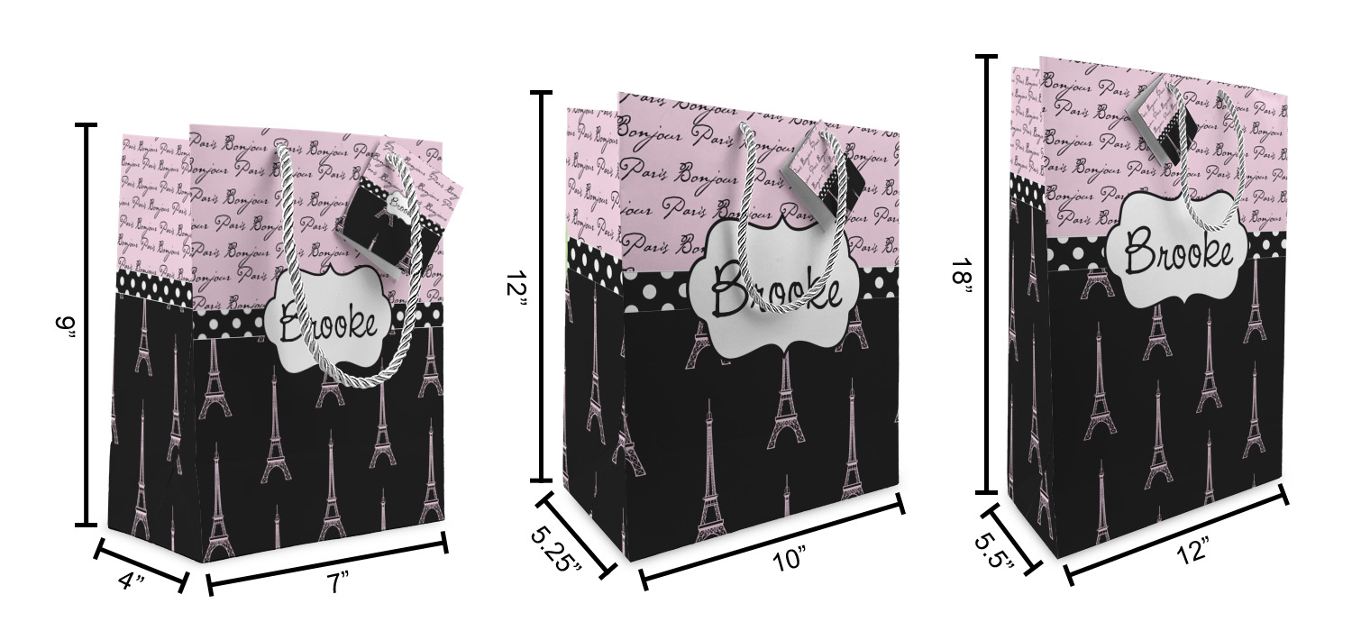 These custom gift bags come in your choice of 3 sizes. Their dimensions are below: