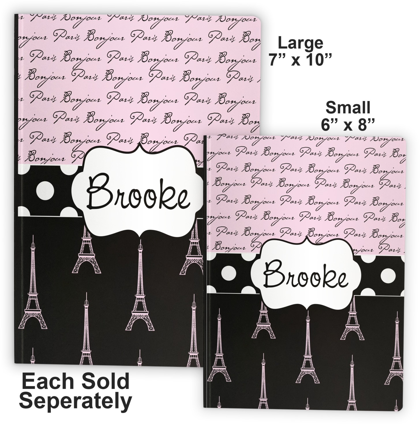 The covers of these personalized journals have a matte, laminate coating, giving them a soft, smooth feel. For your convenience, these custom journals are filled with 100 lined pages that have been perforated for an easy tear and removal. You are able to customize the entire cover of your custom notebook, including the front, back, and spine. The interior of the notebook is white in color.