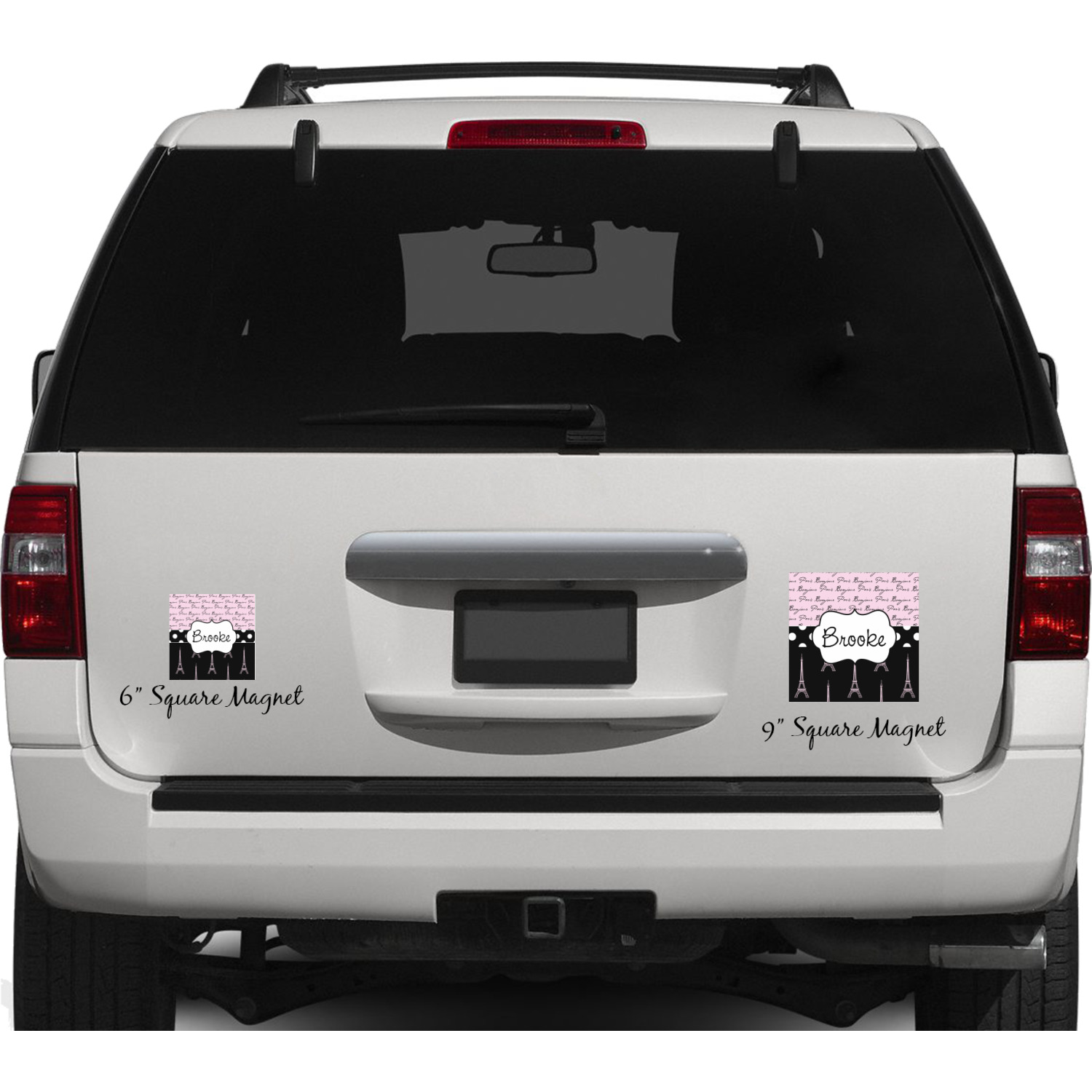 Your personalized car magnets are available for purchase in two shapes and two sizes. We carry round and square editions; each shape can either be 6 by 6 inches, or 10 by 10 inches, depending on your needs. Both versions are 1 millimeter thick, which is considered, within the industry, as the ideal thickness for automobile magnets. The magnetic car decals will adhere to any smooth, metal surface of your cars body, such as the trunk door or a side panel. However, please note that some vehicles are constructed from fiberglass bodies, which prevents the adhesion of anything magnetic. We advise that you test your vehicle before purchasing these magnets.