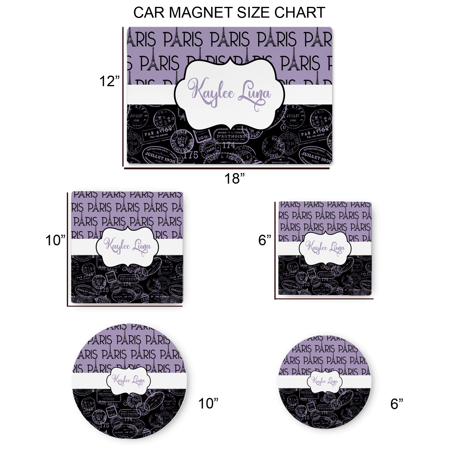 Your personalized car magnets are available for purchase in two shapes and two sizes. We carry round and square editions; each shape can either be 6 by 6 inches, or 10 by 10 inches, depending on your needs. Both versions are 1 millimeter thick, which is considered, within the industry, as the ideal thickness for automobile magnets. The magnetic car decals will adhere to any smooth, metal surface of your cars body, such as the trunk door or a side panel. However, please note that some vehicles are constructed from fiberglass bodies, which prevents the adhesion of anything magnetic. We advise that you test your vehicle before purchasing these magnets.